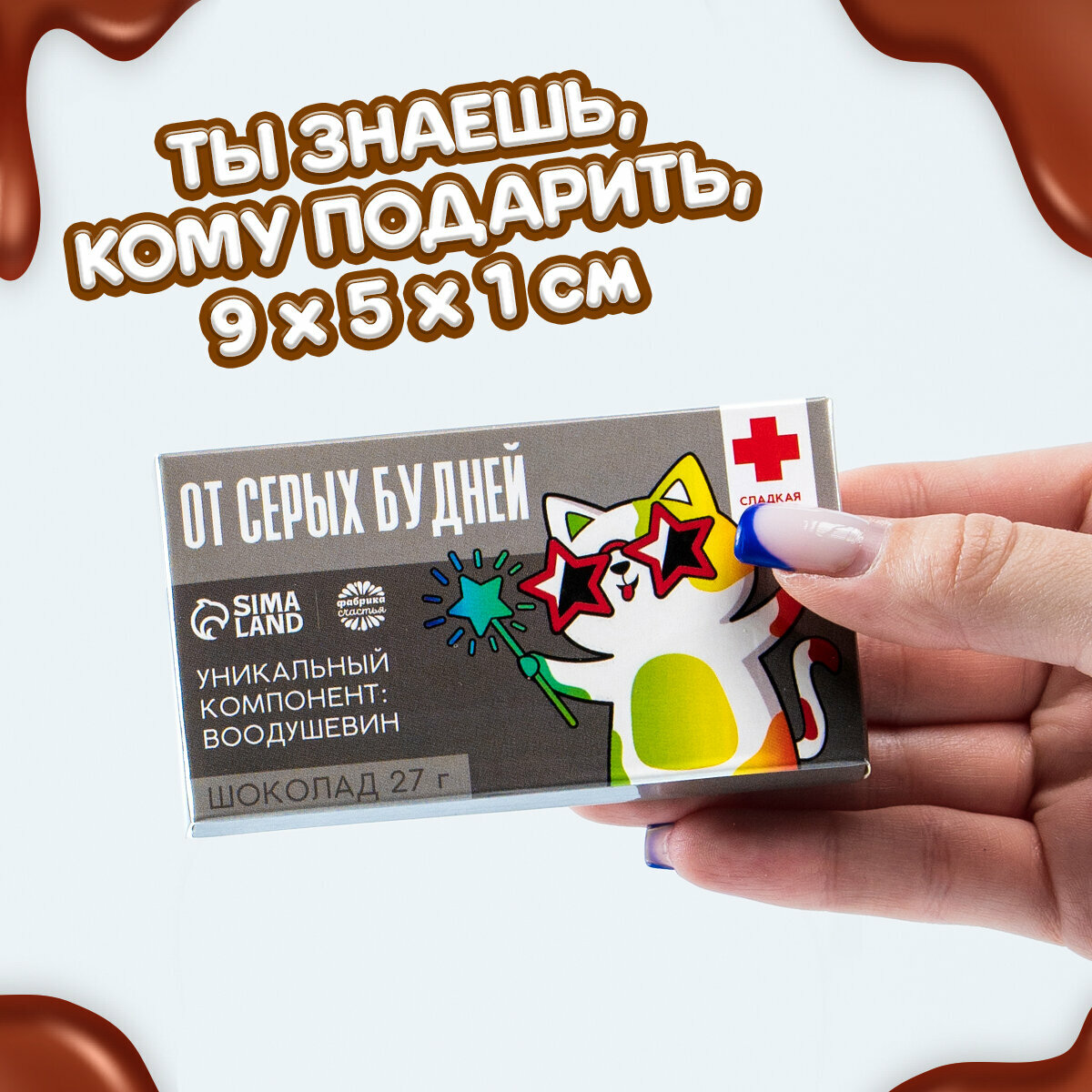 Подарочный молочный шоколад "Противогрустин", 560 ккал, мини-плитка, без добавок, 27 г