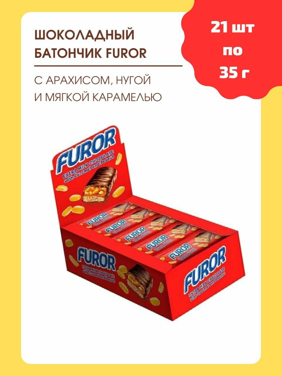 Шоколадный батончик Furor (арахис, карамель, нуга) 21шт*35г интересное: