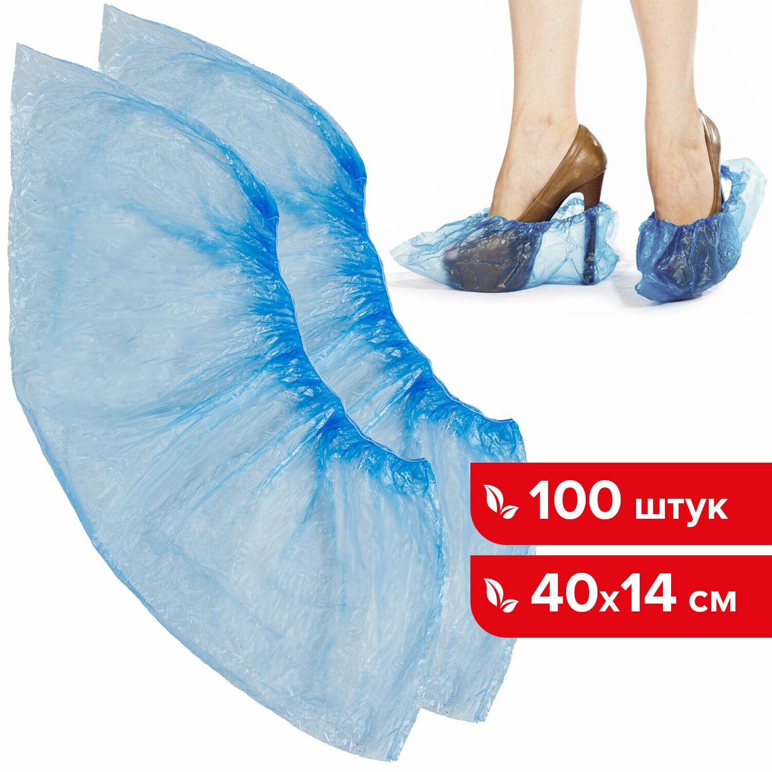 Бахилы комплект 100 штук (50 пар) в упаковке, эконом, размер 40х14 см, 2.2 г, ПНД, LAIMA, 103423