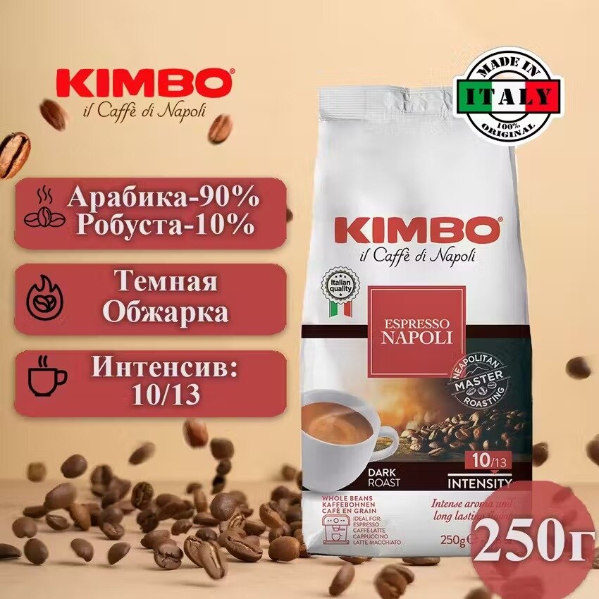 Кофе в зернах Kimbo Espresso Napoletano темная обжарка, 250 г интересное: