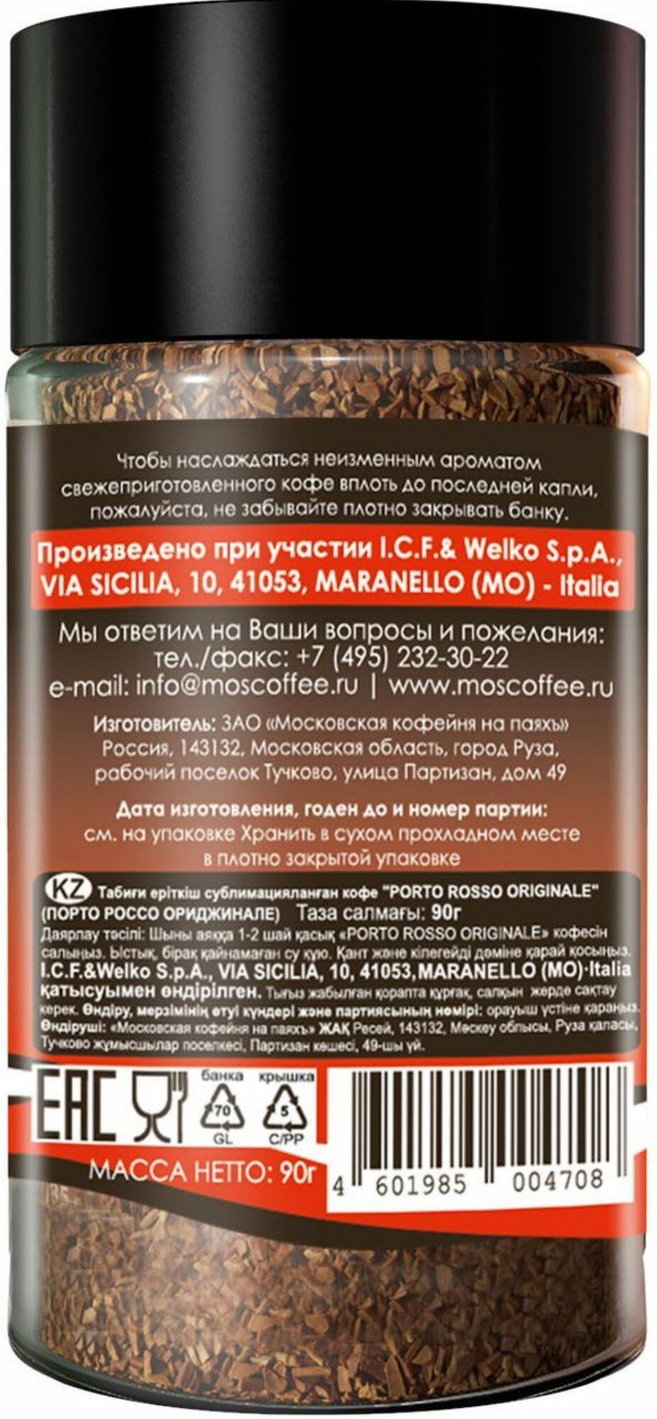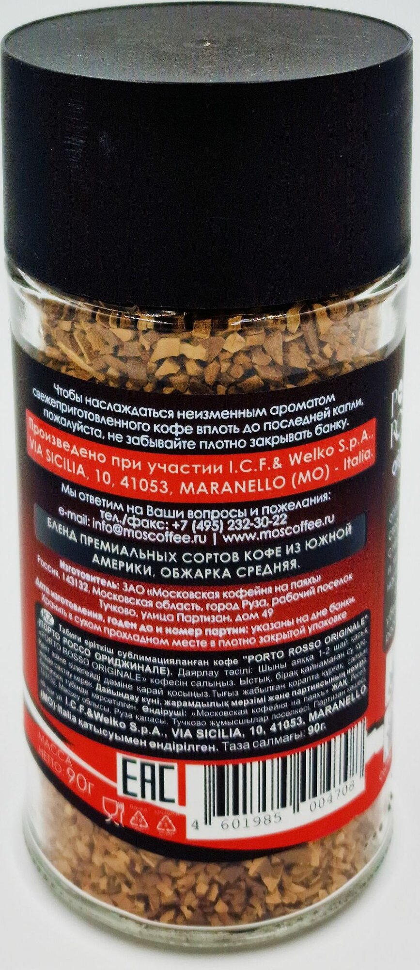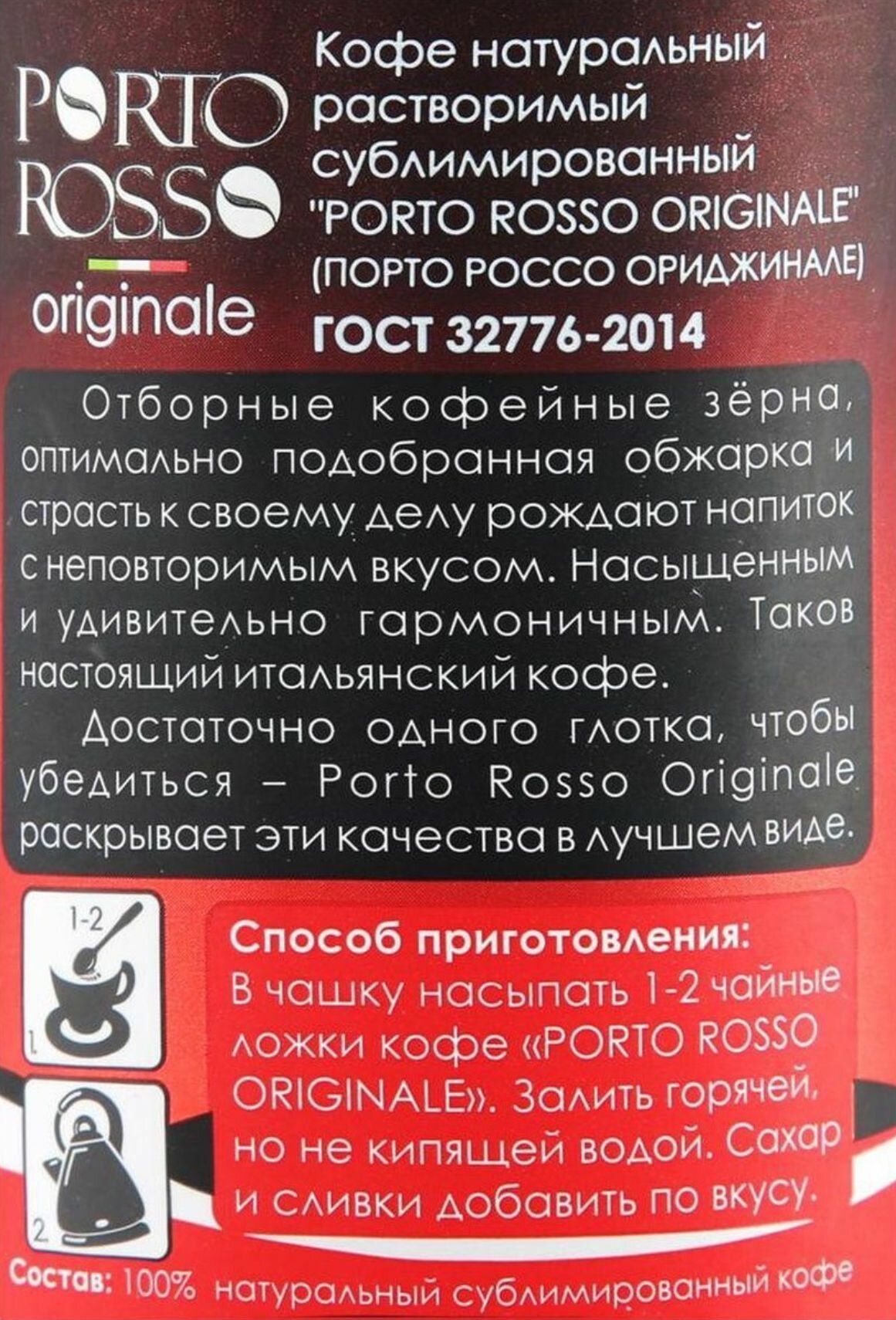Porto Rosso Кофе сублимированный ORIGINALE 90 г интересное: