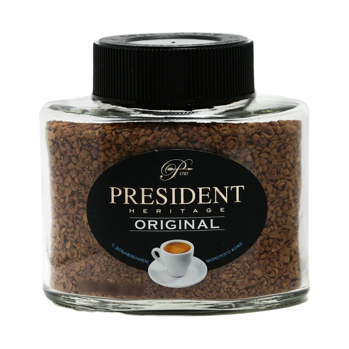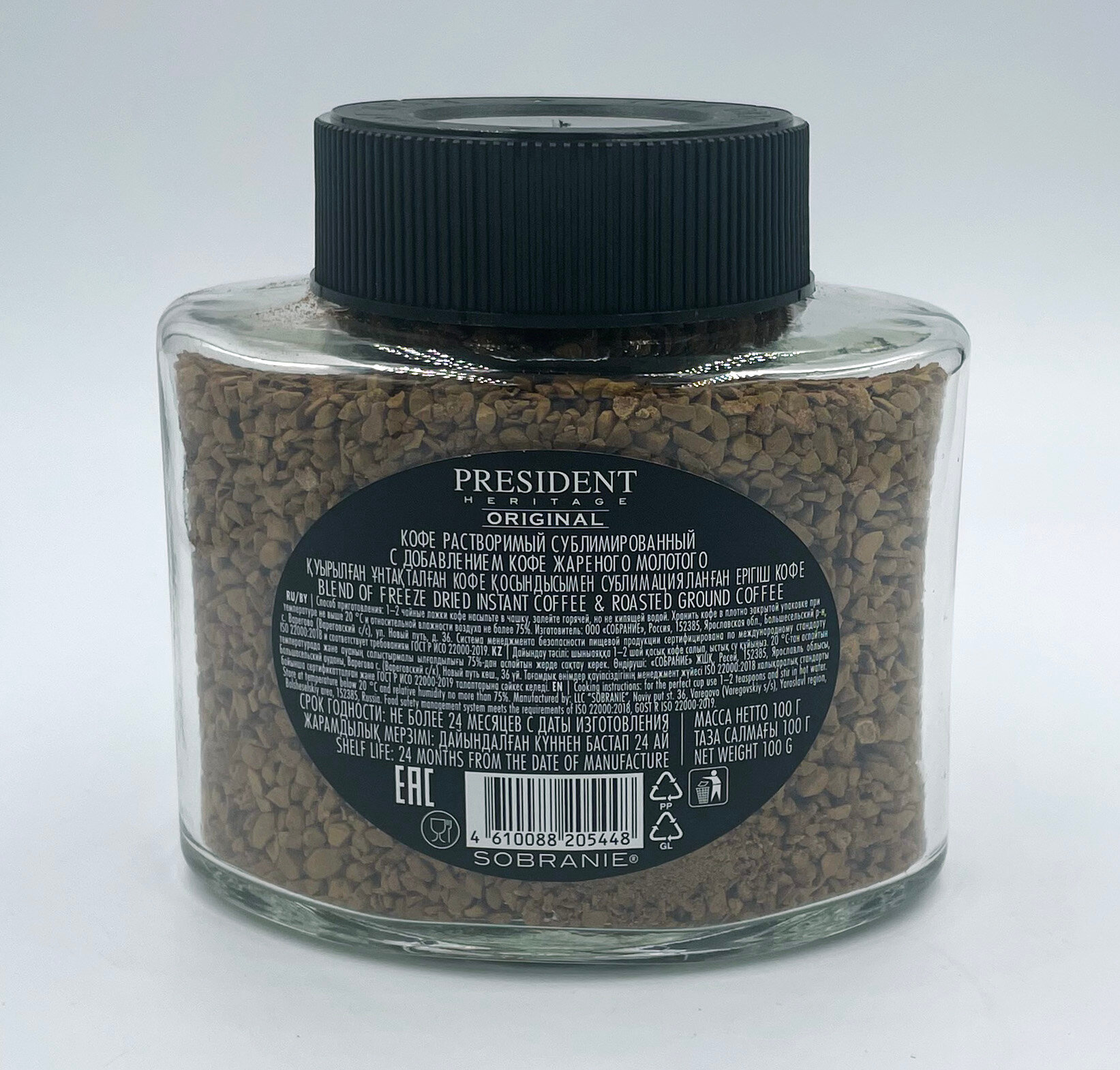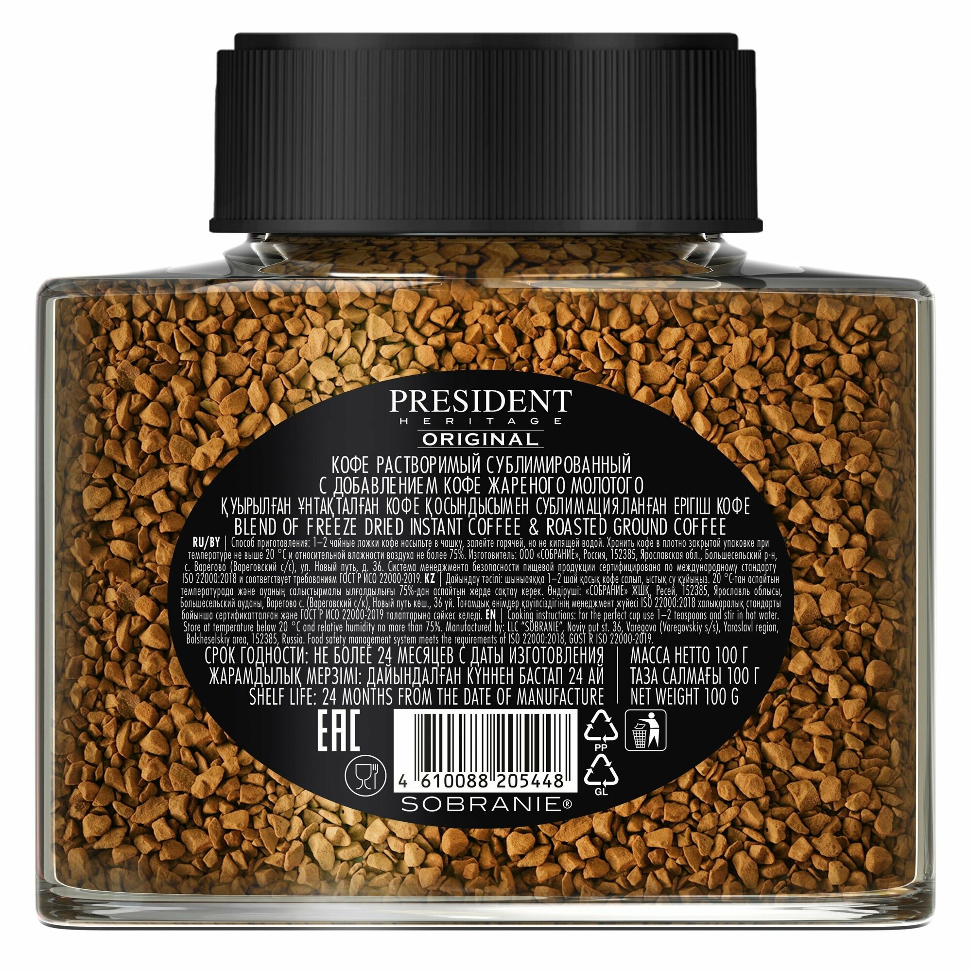 Кофе растворимый PRESIDENT HERITAGE ORIGINAL сублимированный, 6*100 грамм с добавлением кофе жареного молотого интересное: