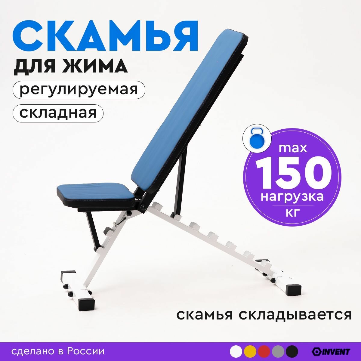 Скамья для жима складная спортивная регулируемая, тренажер силовой INVENT SK-02 белый интересное: