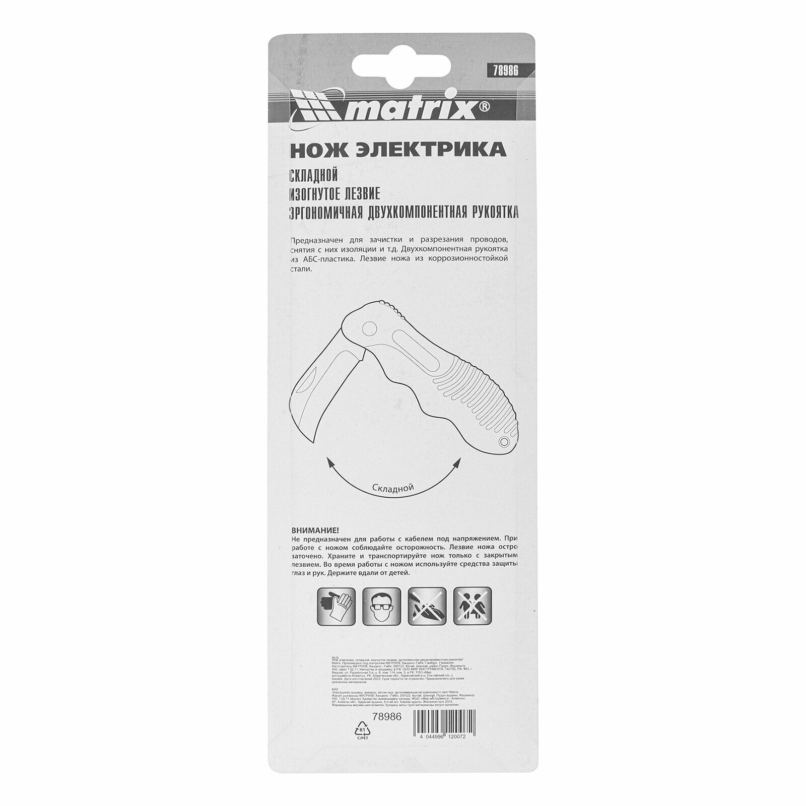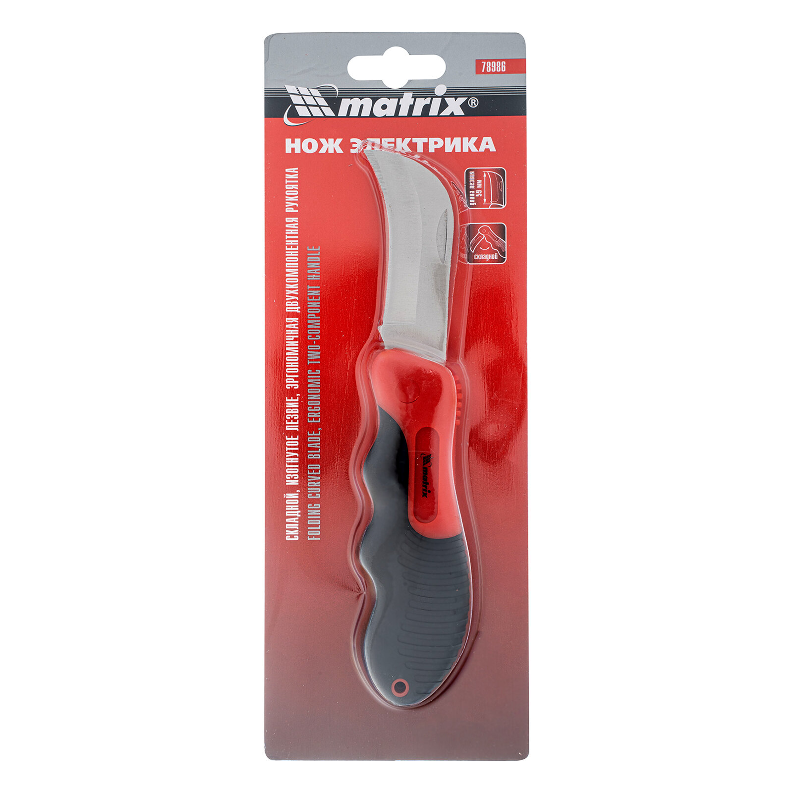 Купить Нож электрика Matrix складной, изогнутое лезвие, эргономичная двухкомпонентная рукоятка 78986