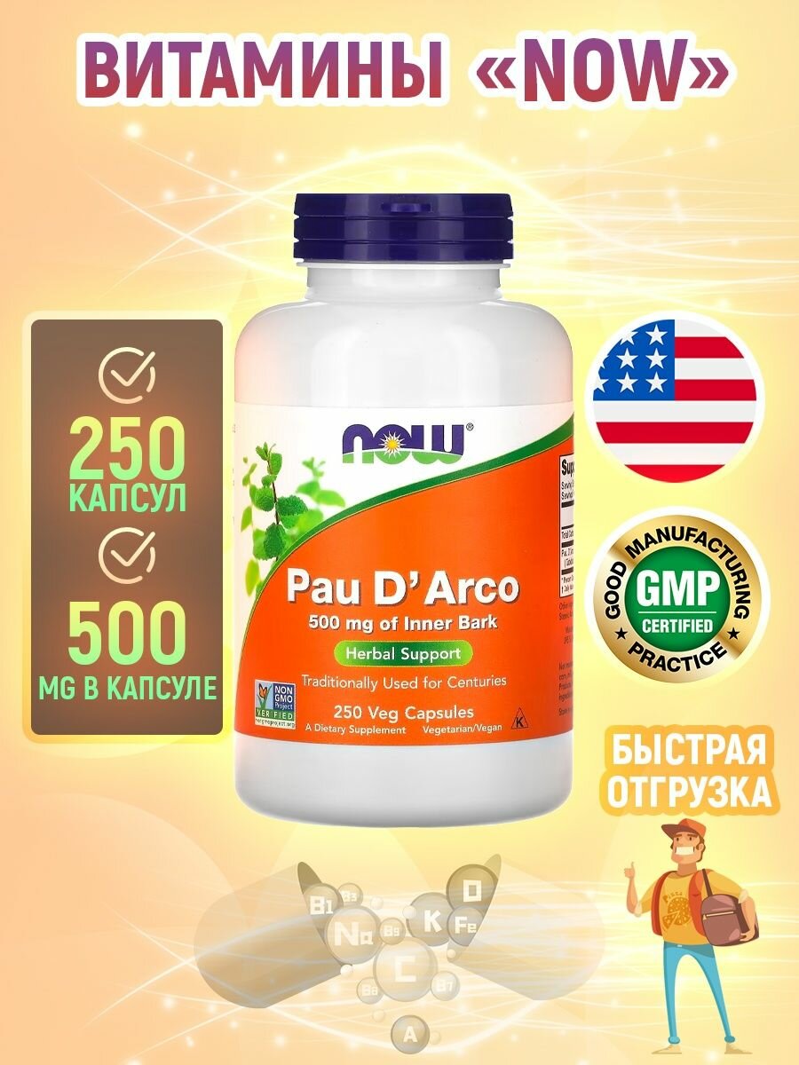 NOW PAU D' ARCO 500 мг, 250 вег. капс. Кора муравьиного дерева интересное: