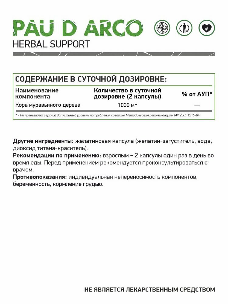 NATURALSUPP Pau D Arco Кора муравьиного дерева 400мг (60 капсул) (БАД) интересное: