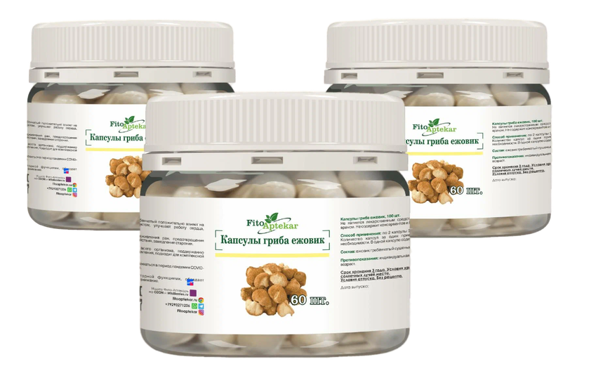 Ежовик гребенчатый в капсулах 60 шт*3 упаковки