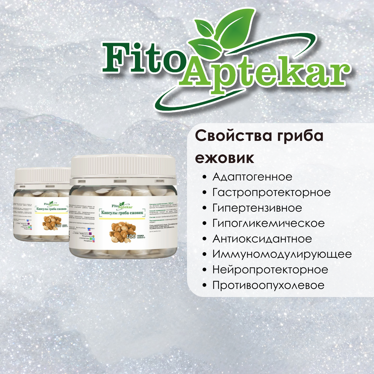 Купить Ежовик гриб гребенчатый в капсулах Фито-Аптекарь, натуральный пищевой продукт 100 шт*2 упаковки