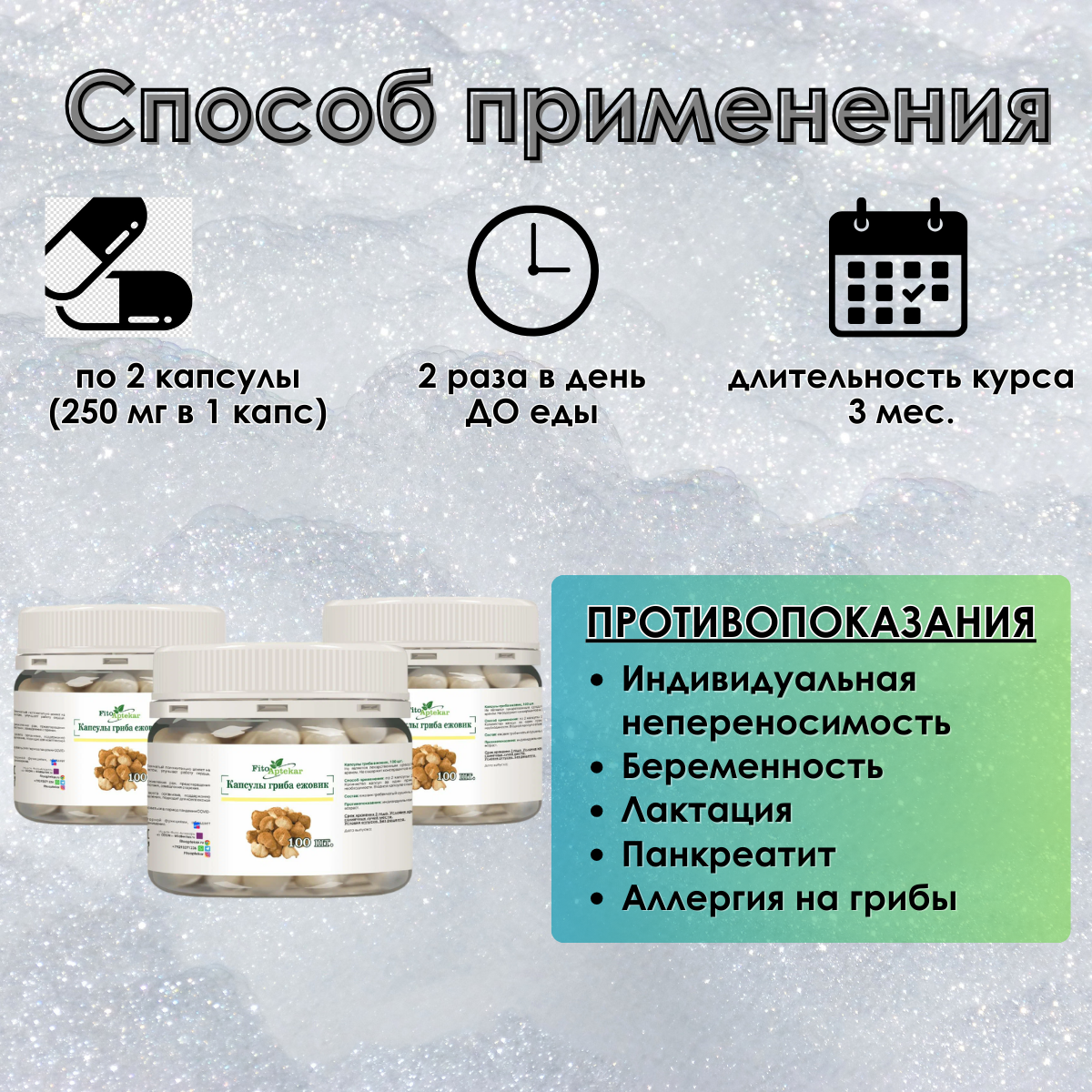 Ежовик гриб гребенчатый в капсулах Фито-Аптекарь, натуральный пищевой продукт 60 шт*3 упаковки