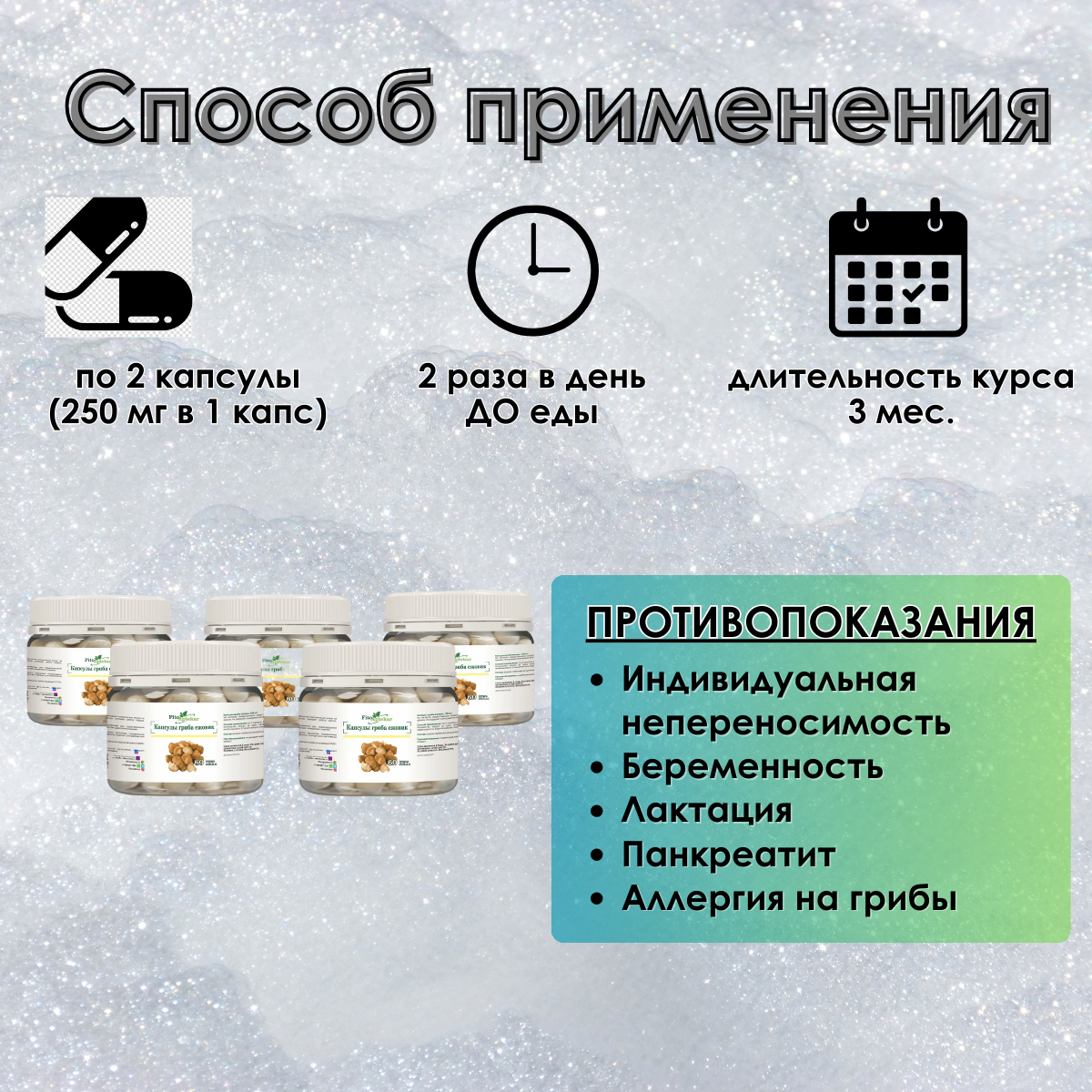 | Способ применения и дозы | 2 капсулы 2 раза в день до еды |