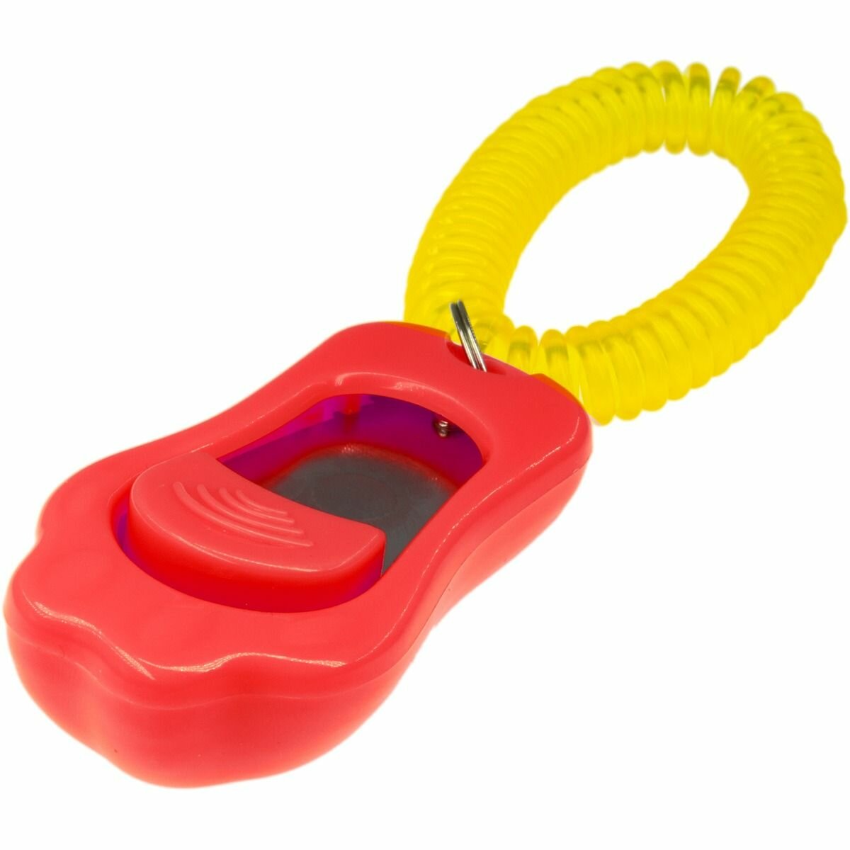 Кликер ZOOONE трехтоновый с браслетом красный для собак (7 см)