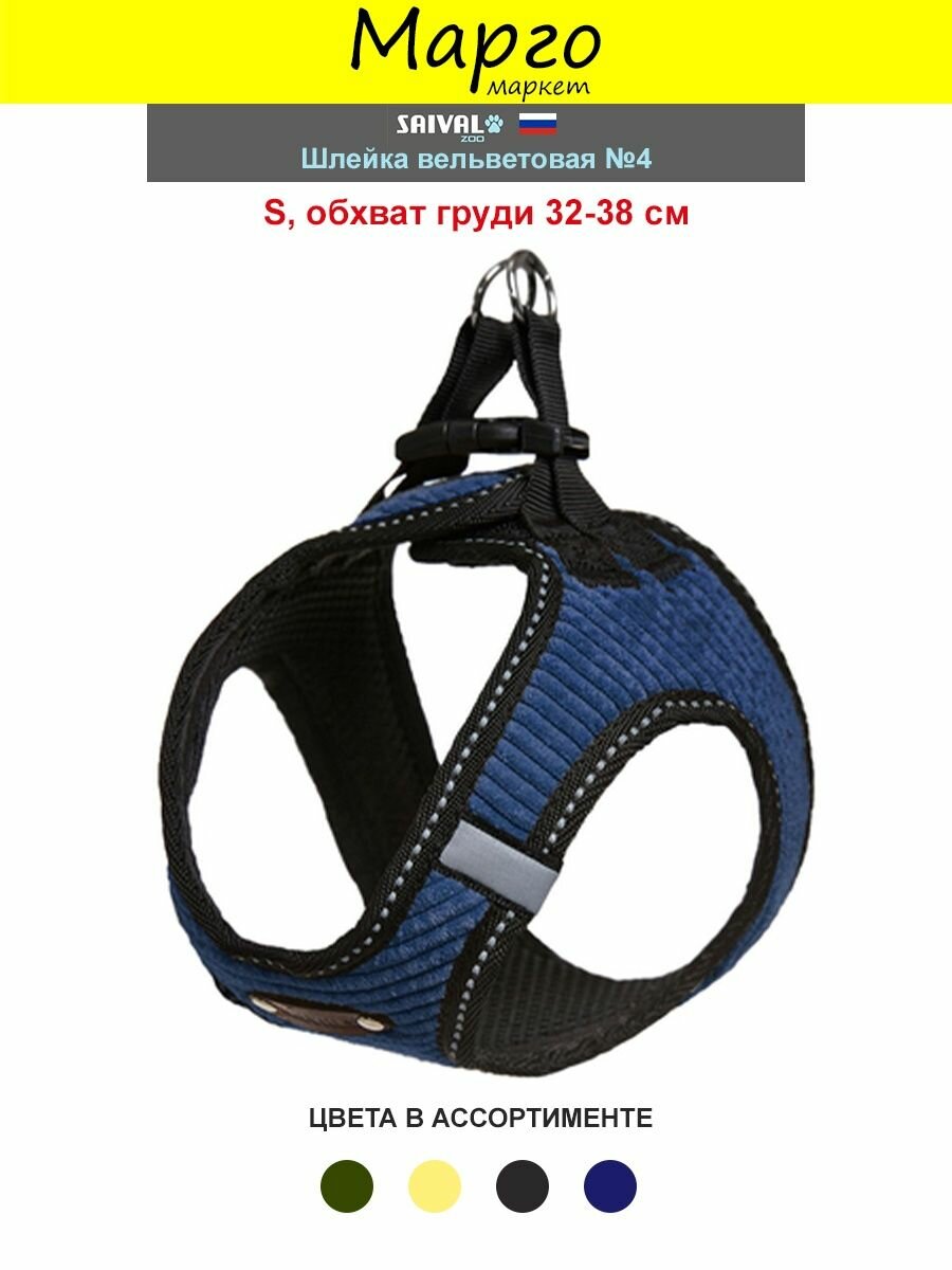 Шлейка Saival вельветовая №4 S (обхват груди 32-38см) синяя (2 шт)