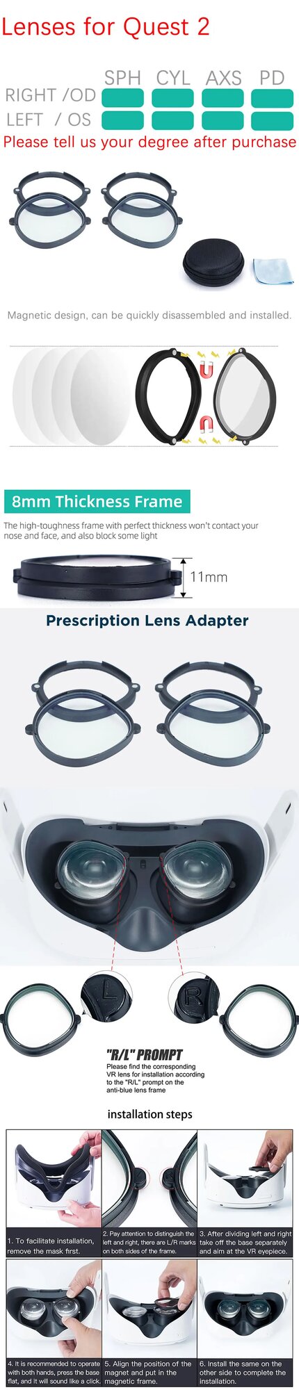 Линзы VR по рецепту для Oculus Quest 2 Quest 3, for Quest 2