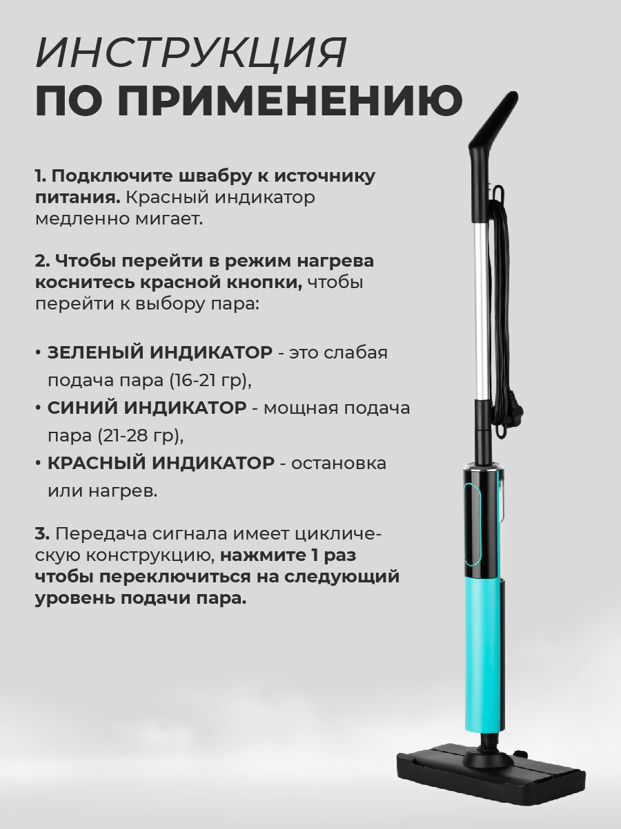 Паровая швабра для пола Bauhaus, 1200W, 0,35L, цвет тиффани (2 режима подачи пара) интересное:
