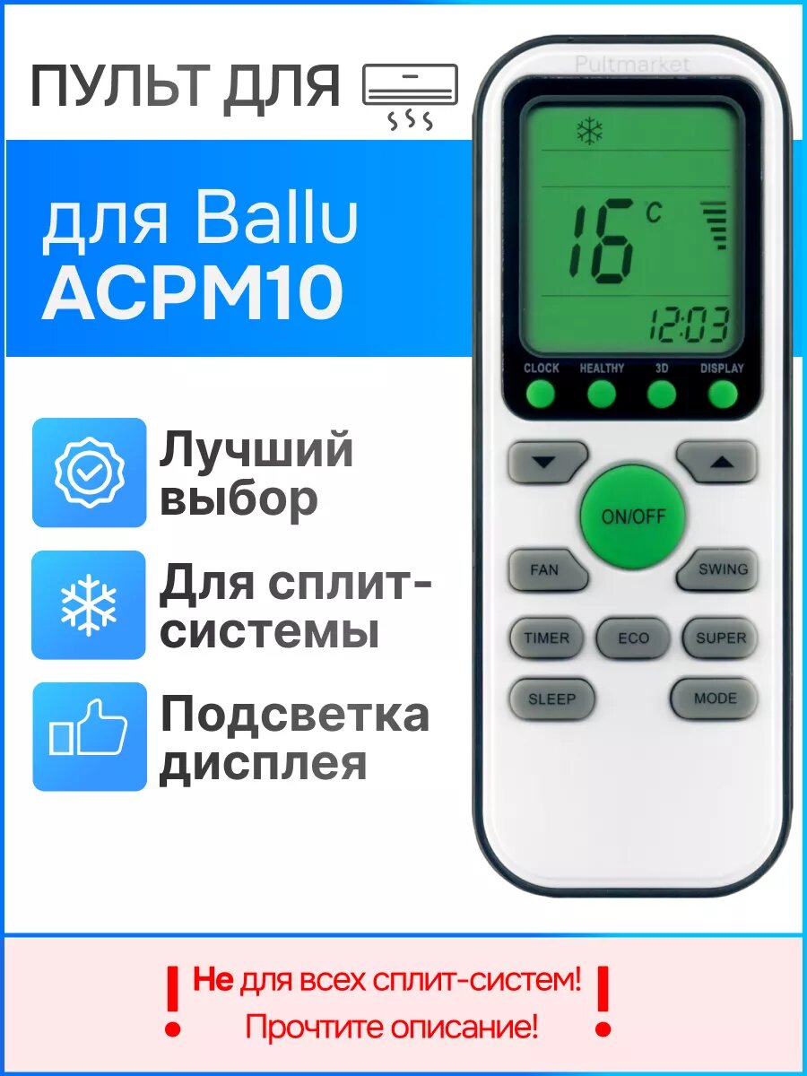 Пульт для Ballu ACPM10 для кондиционера (с подсветкой) интересное: