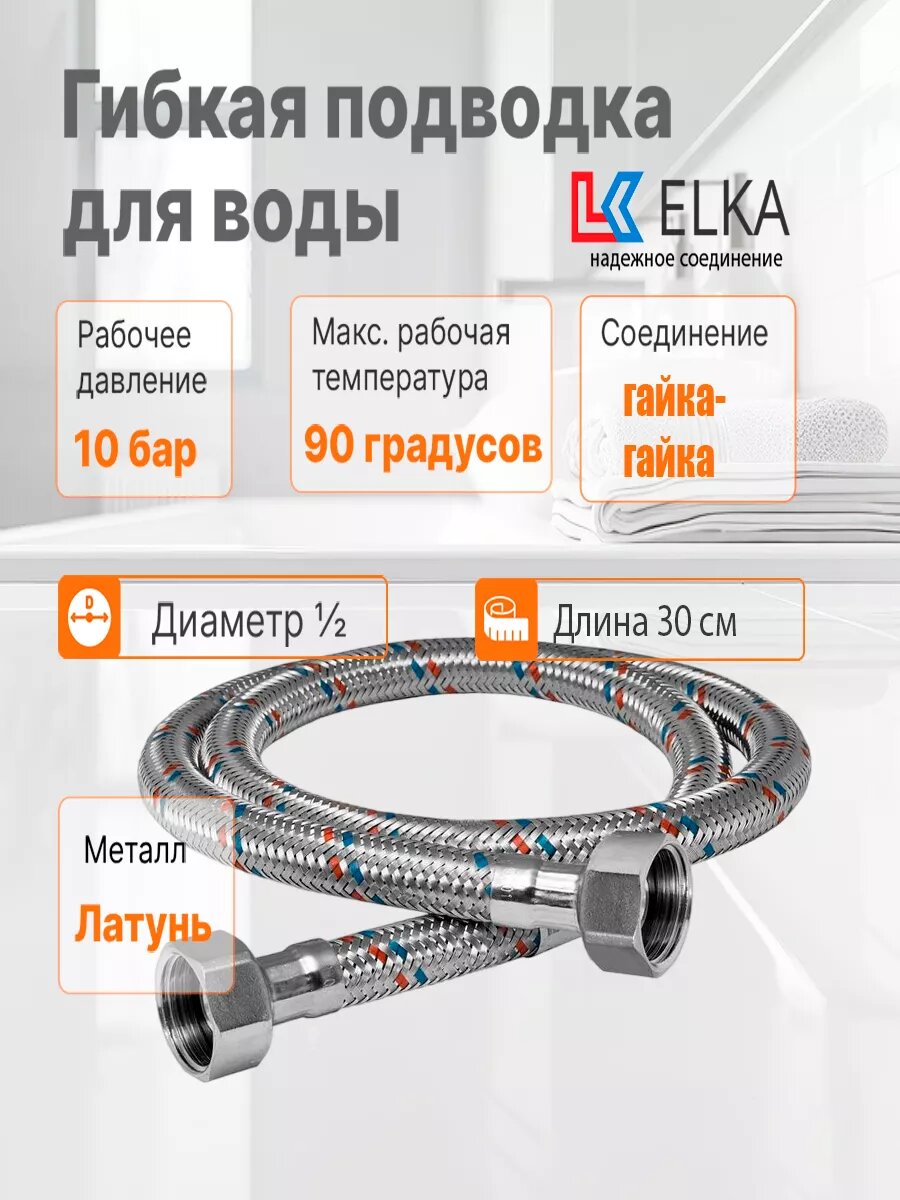 Гибкая подводка для воды ELKA 2455226 гайка - гайка ½ 300 мм