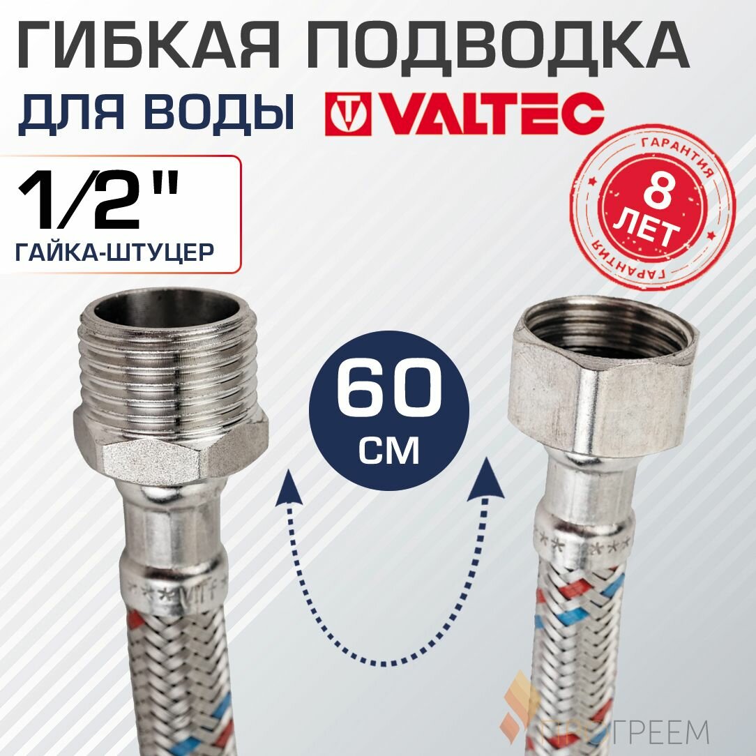Гибкая подводка для воды Valtec 60 см; 1/2"; гайка-штуцер