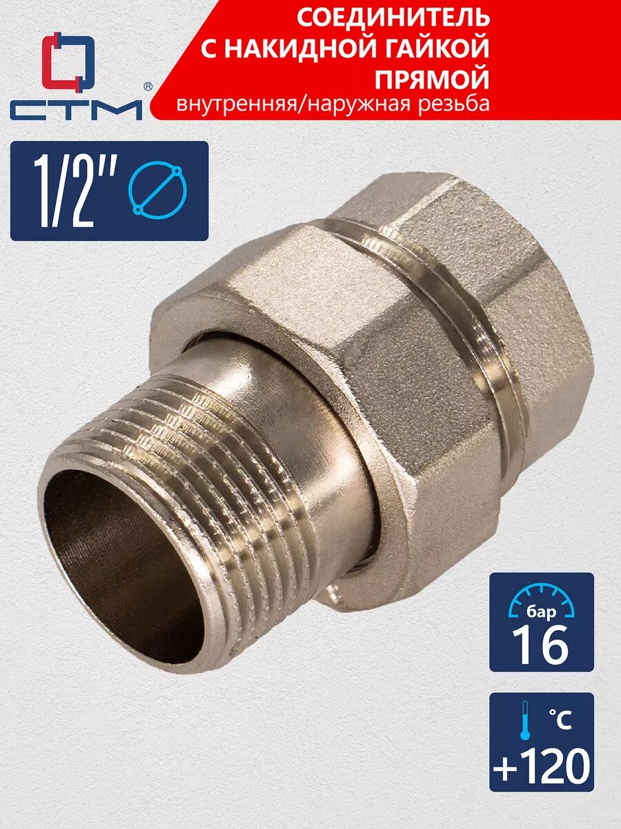 Соединитель с накидной гайкой прямой 1/2" г/ш CTM