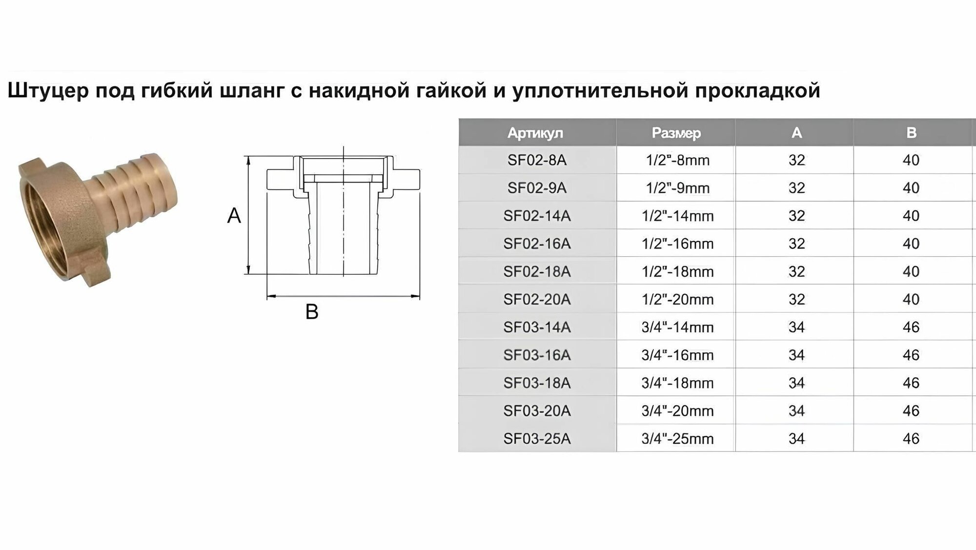 Штуцер латунный для соединения шлангов 3/4" вн. - 20мм с накидной гайкой TIM SF03-20A интересное: