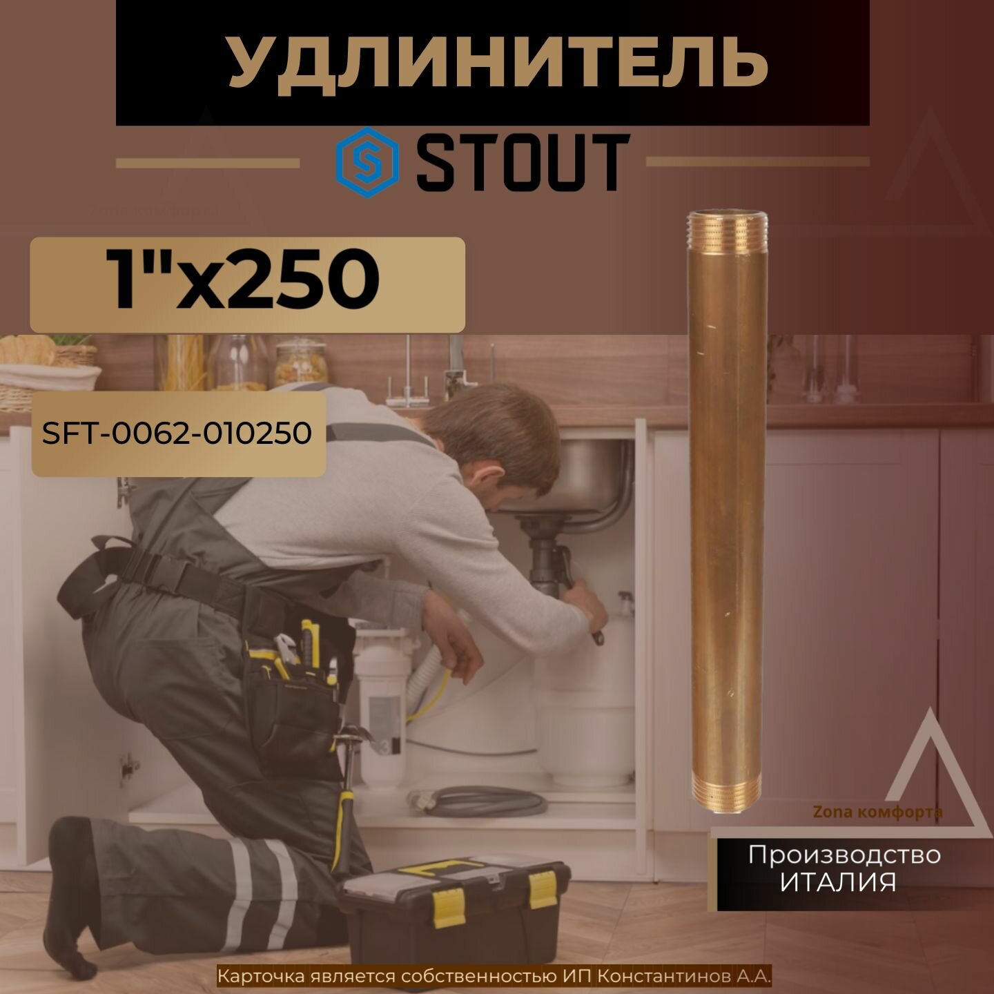 Удлинитель резьбовой STOUT - 1" длина 60 мм (НР/НР, цвет латунный, 2шт)