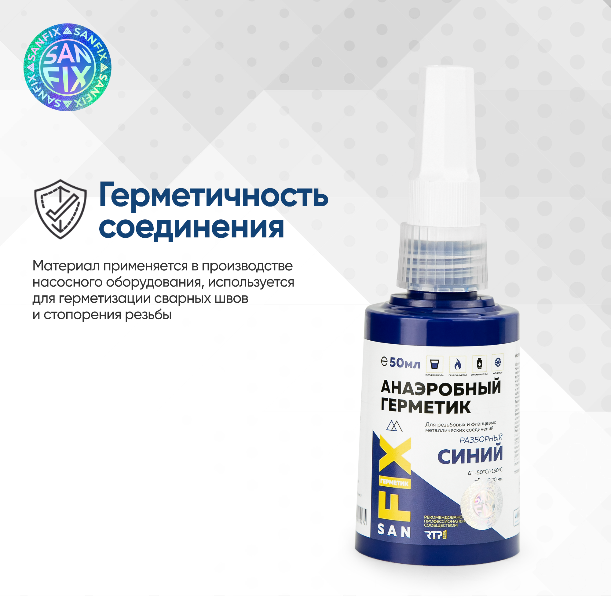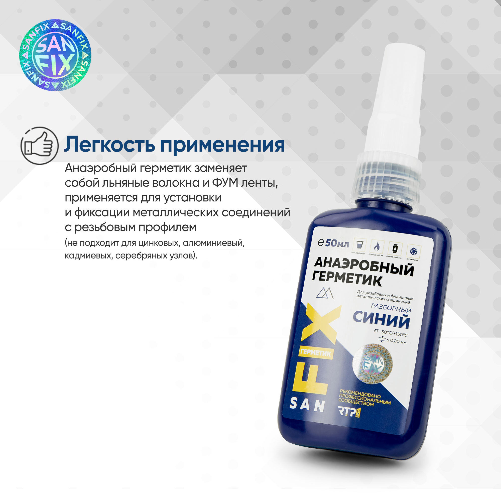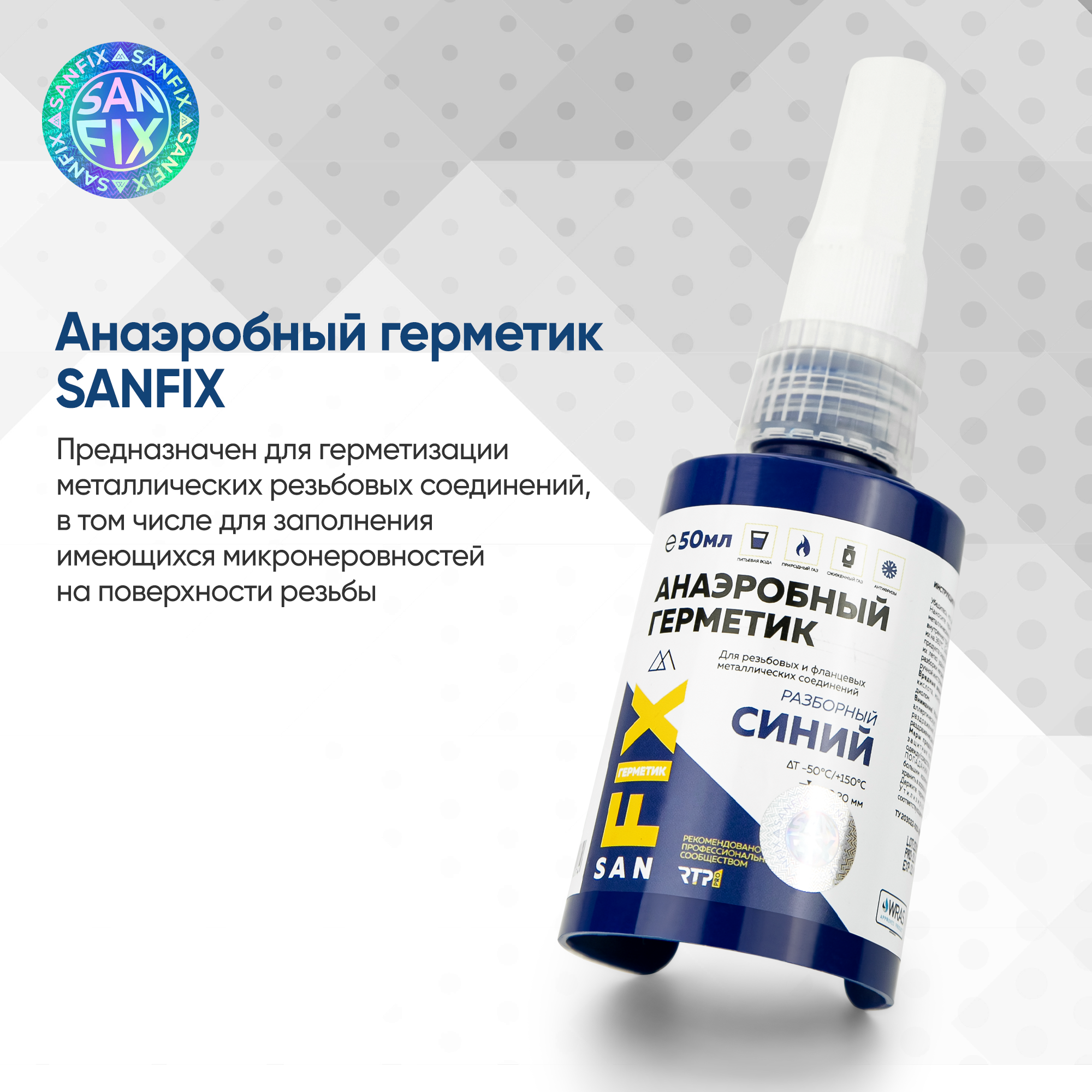 Герметик анаэробный разборный средней прочности, 50 мл синий, Sanfix