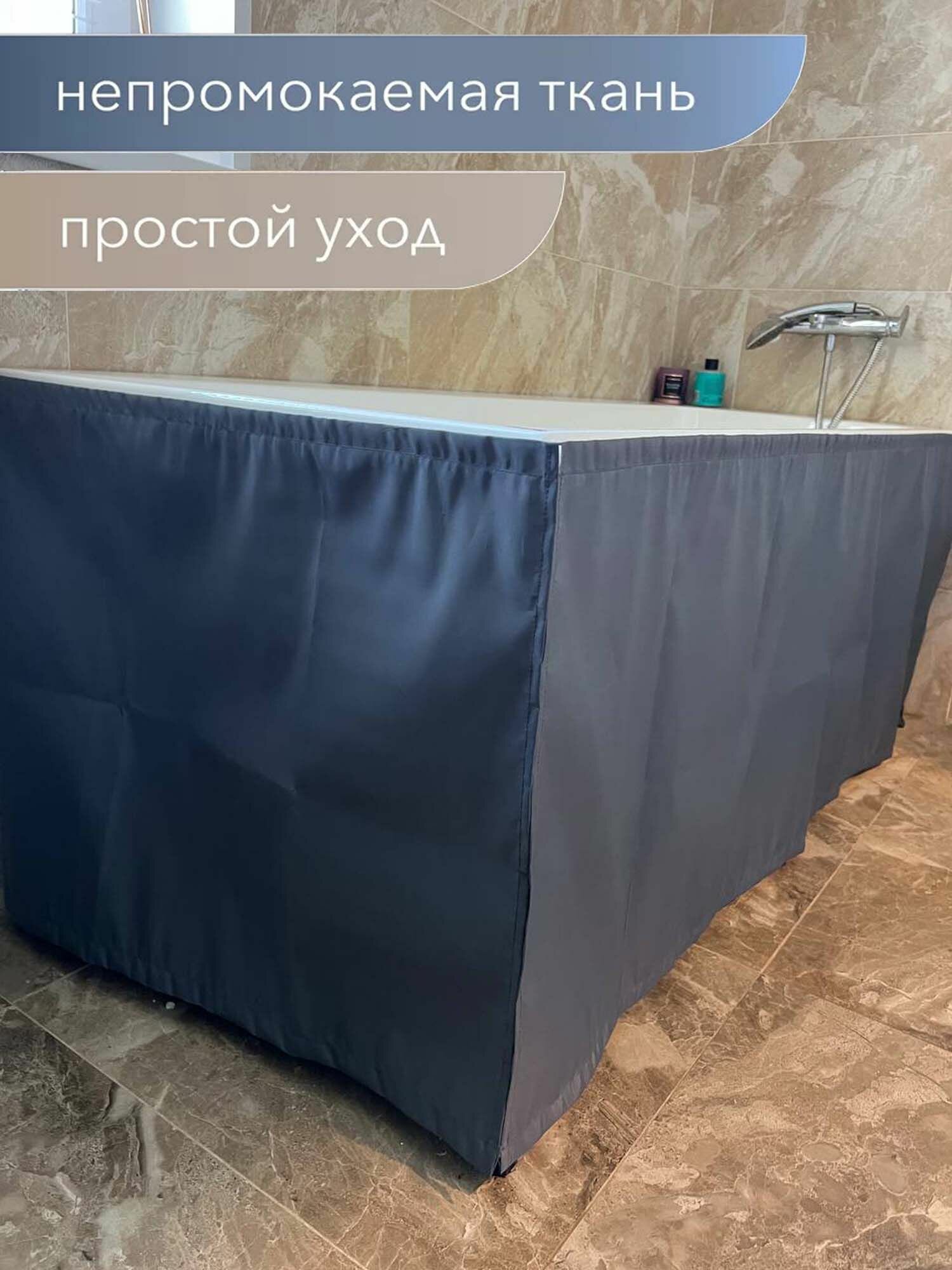 Экран под ванну из водоотталкивающей ткани, серый, размер 145*60 см, крепление не требует монтажа