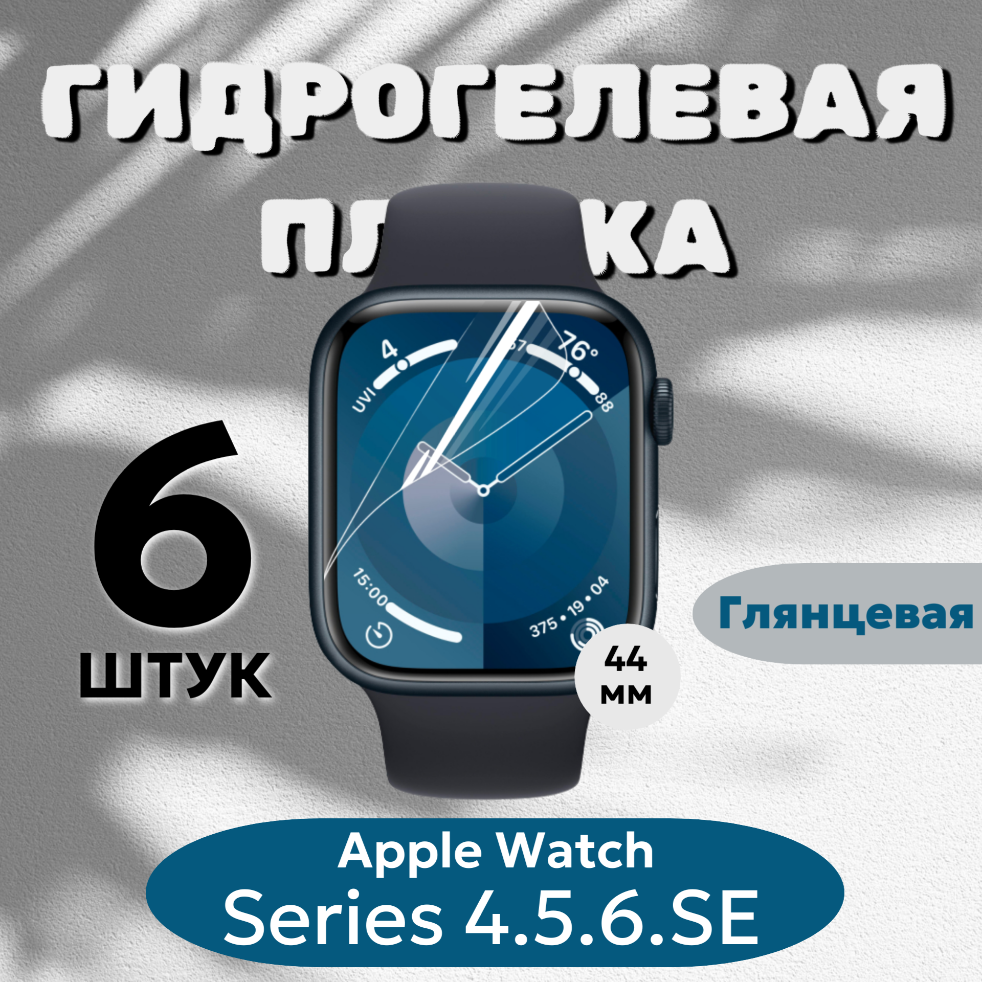Купить Гидрогелевая пленка Apple Watch 44мм Series 4, 5, 6, SE, SE2 полиуретановое покрытие 6шт