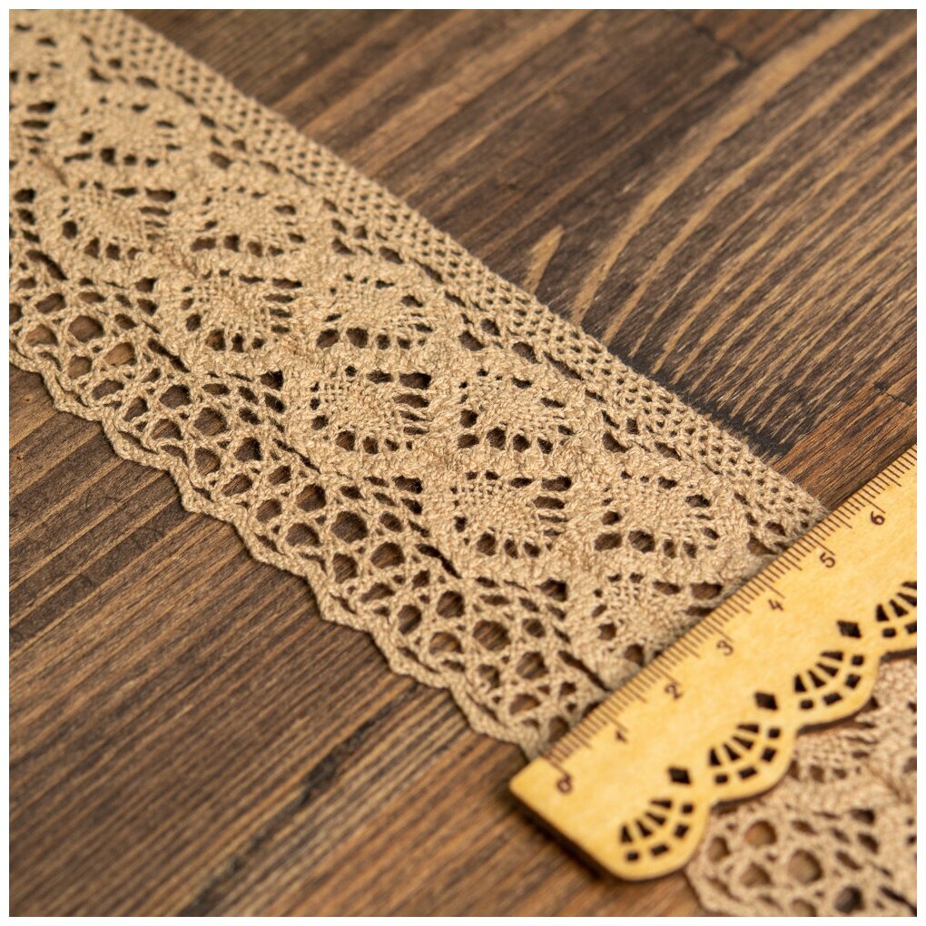 Тесьма вязаная KRUZHEVO 50мм TBY-6368 кружево хлопок цв.21 какао уп.10м