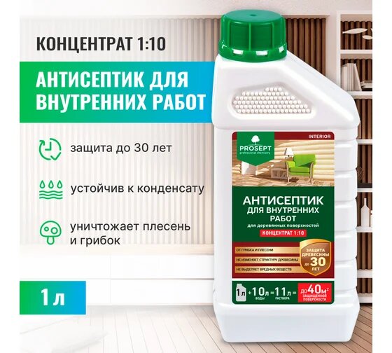 СохранитьProsept Interior антисептик для внутренних работ, концентрат 1:10, 1 л интересное: