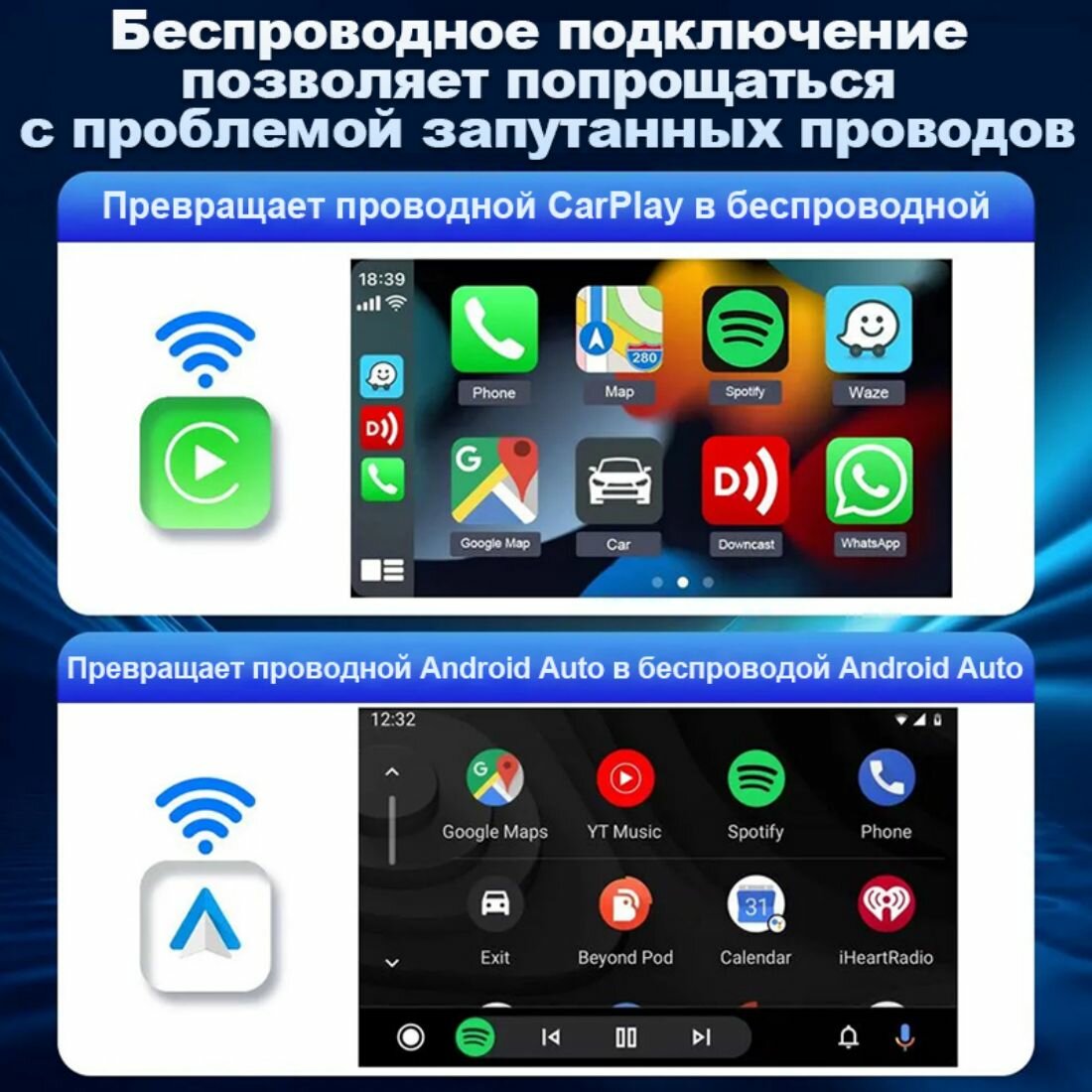 | Совместимость | автомобили с проводным CarPlay/проводным Android Auto |