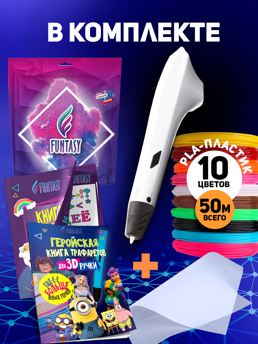 Купить Набор для 3Д творчества Funtasy 3D-ручка Simple + PLA пластик 10 цветов + Книга с трафаретами Hero и VSE