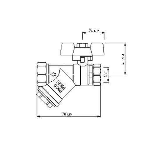 Купить Кран VALTEC c косым фильтром 1/2"ВВ бабочка VT.293.N.04