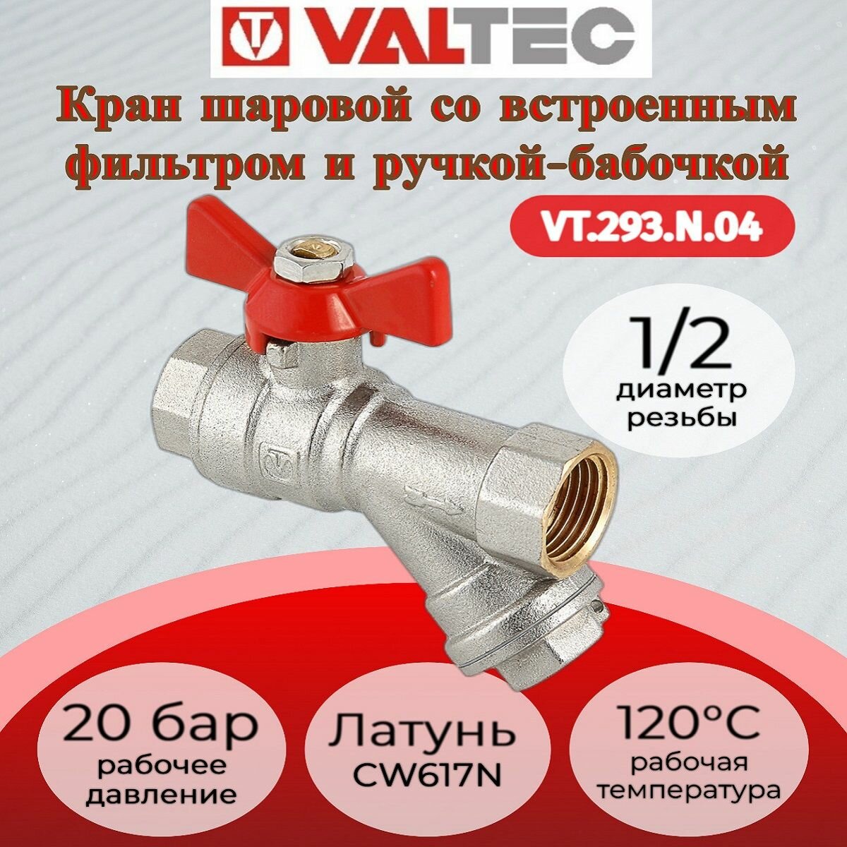 Кран VALTEC c косым фильтром 1/2"ВВ бабочка VT.293.N.04 интересное: