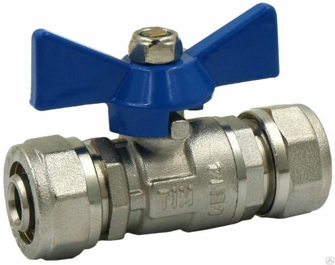 Кран шаровый никелированный 1/2" нар - Ф16 цанга (синяя ручка-бабочка)TIM BV206-02MN
