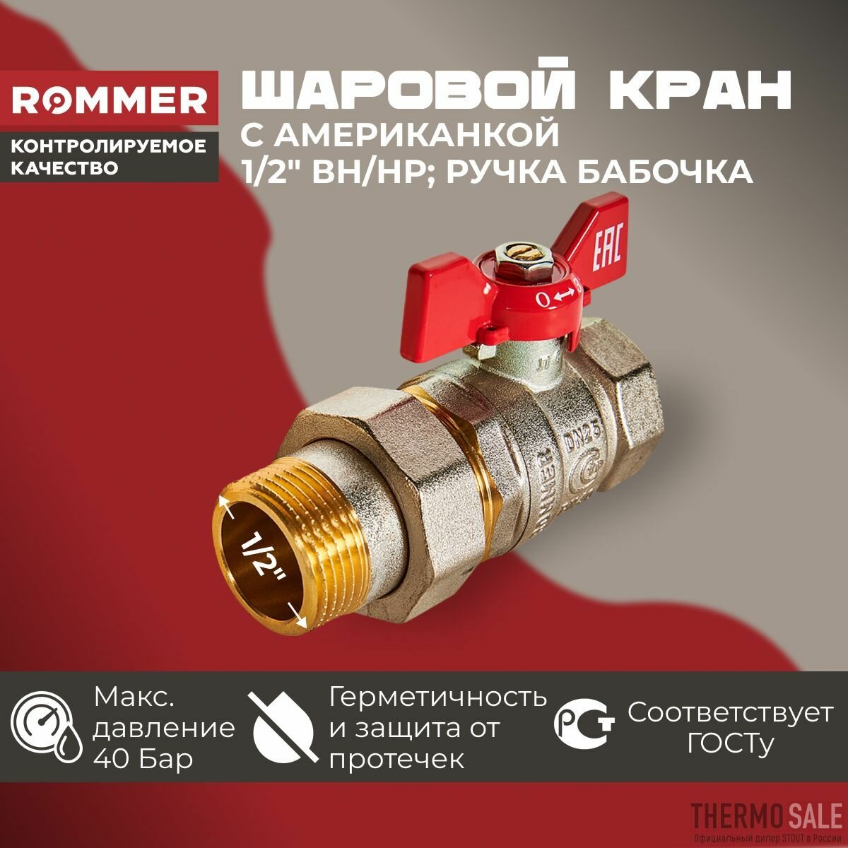 Rommer Шаровой кран с американкой 1/2"" Вн/нр RBV-0005-0510215 Rg008ub5bj9tam .