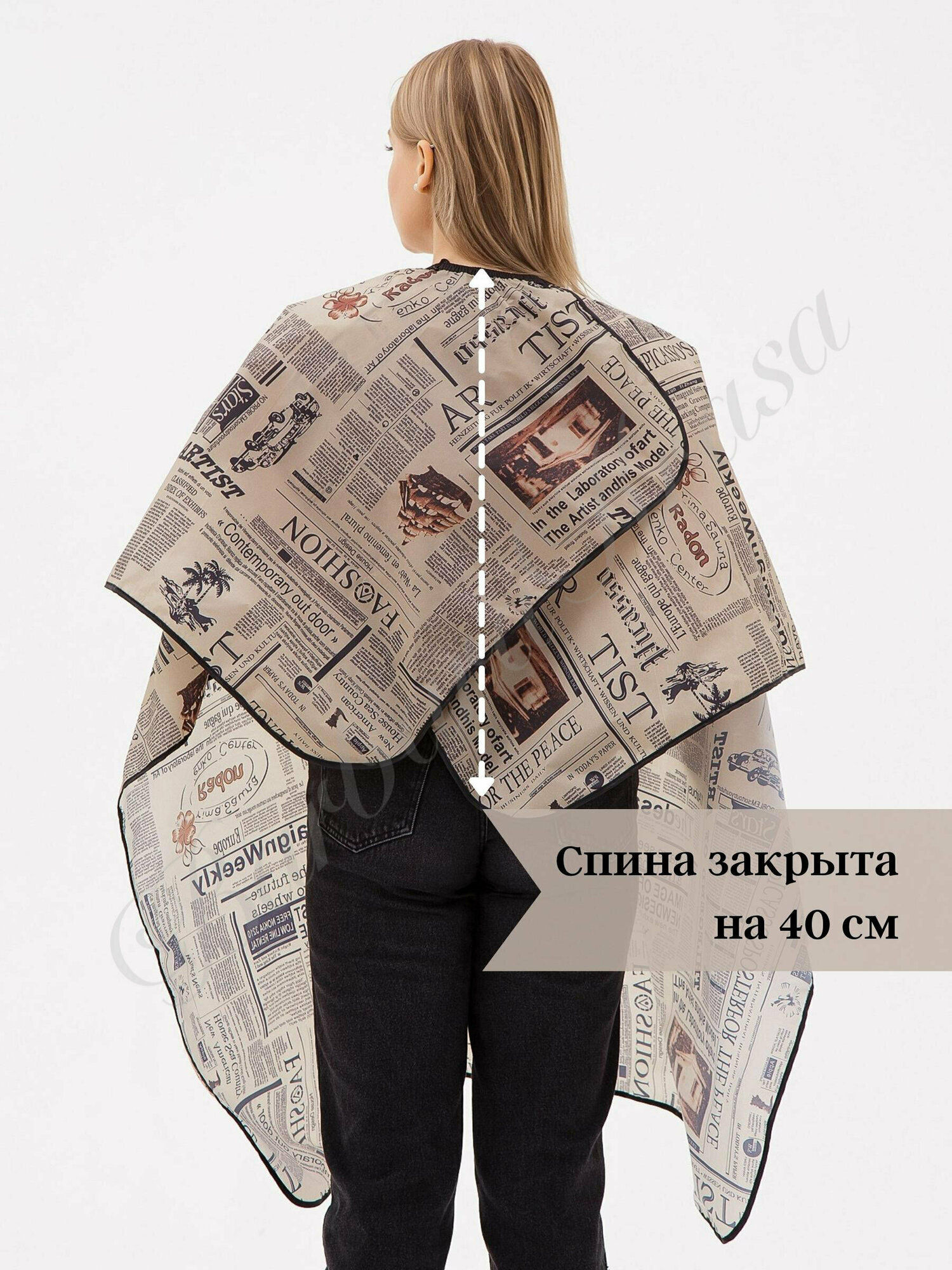 Купить Пеньюар парикмахерский - Пелерина - накидка для окрашивания и стрижки 130/145 см NEWSPAPER Многоразовый Антистатический Водоотталкивающий материал Barbara Krasa