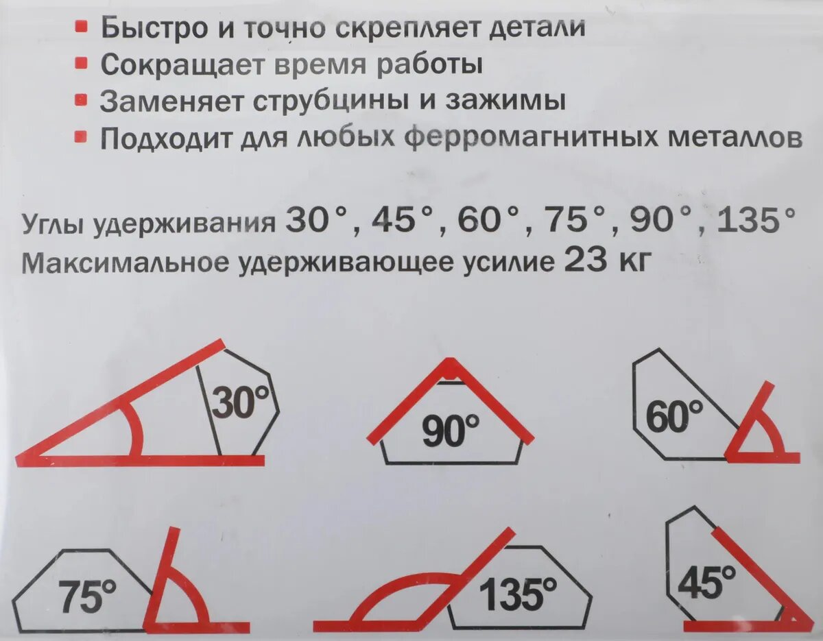 Магнитный угольник для сварки тундра, 45,90,135°, усилие на отрыв 11 кг