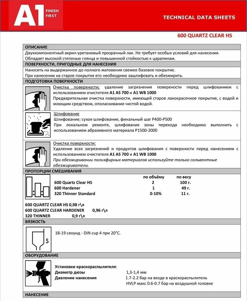 600 лак А1 Quartz Clear HS (в комплекте с отвердителем 1 л + 0,5 л)