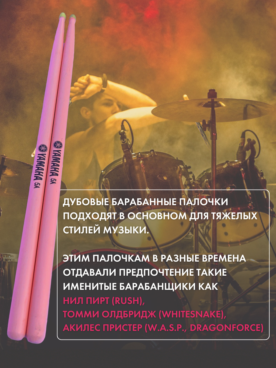 Дубовые барабанные палочки 5A, розовые