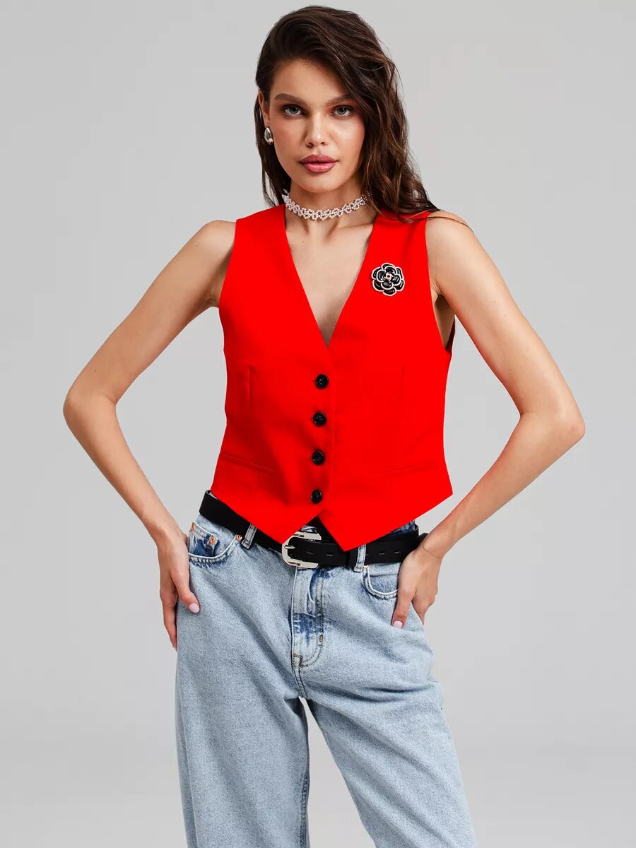 Брошь Elletri, стразы, кристалл, золотой, красный, белый