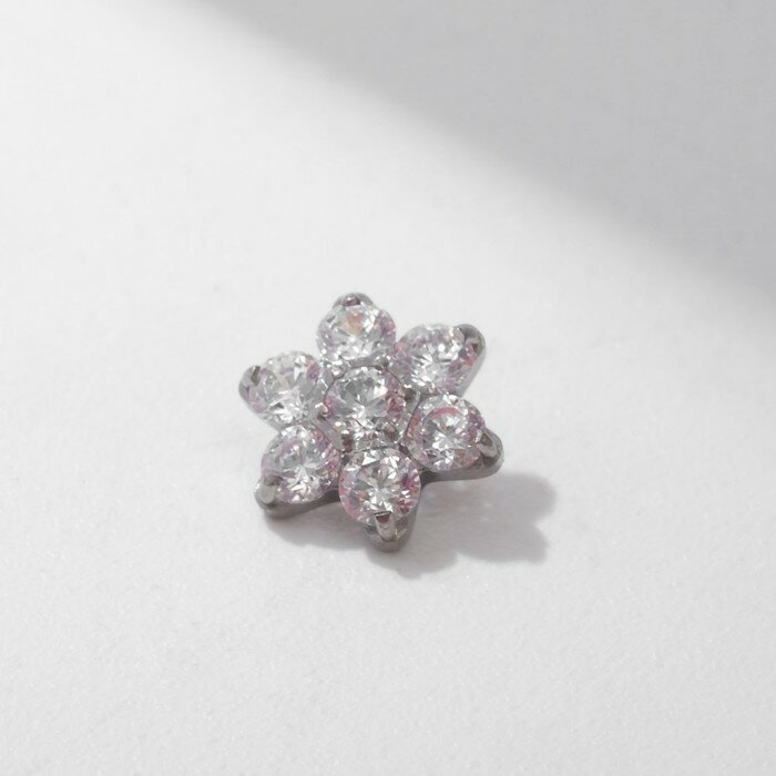Накрутка для пирсинга из нержавеющей стали «Цветок», цвет белый в серебре, резьба 0,07 мм