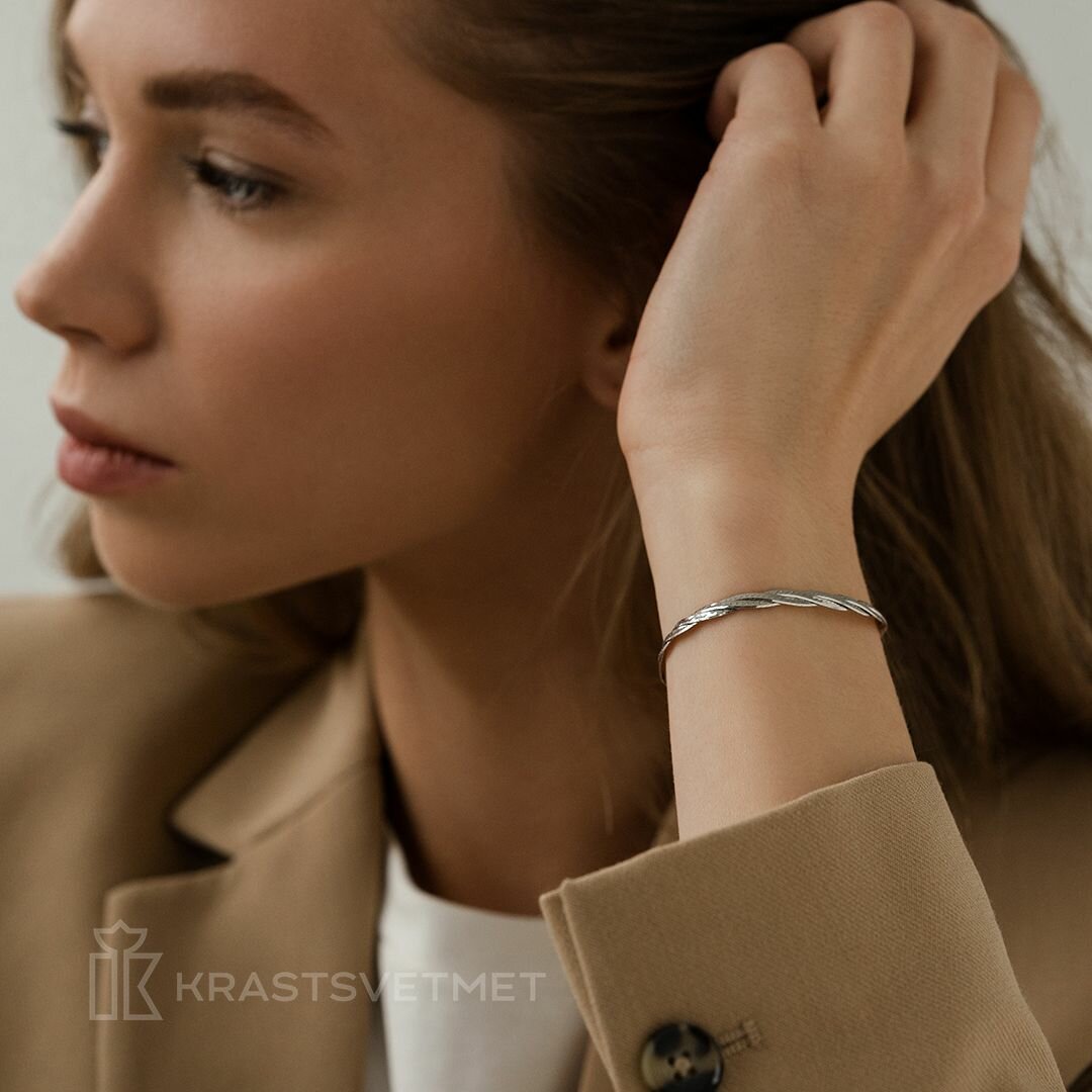 Браслет Krastsvetmet, серебро, 925 проба, родирование, длина 17 см., серебристый