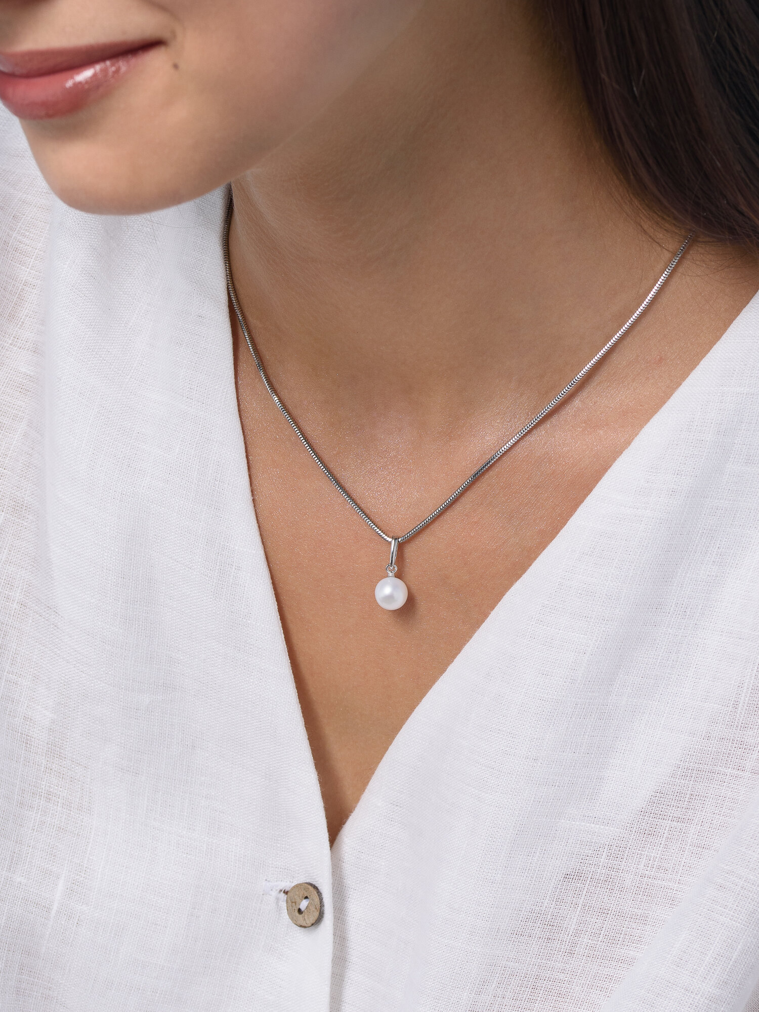 Подвеска на шею с натуральным жемчугом "Жемчуг" серебро 925 пробы Аргентум