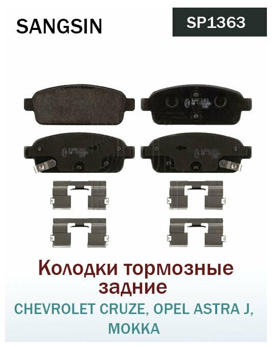 Колодки дисковые задние для chevrolet cruze/orlando 1.4-2.0 09 Sangsin SP1363 интересное: