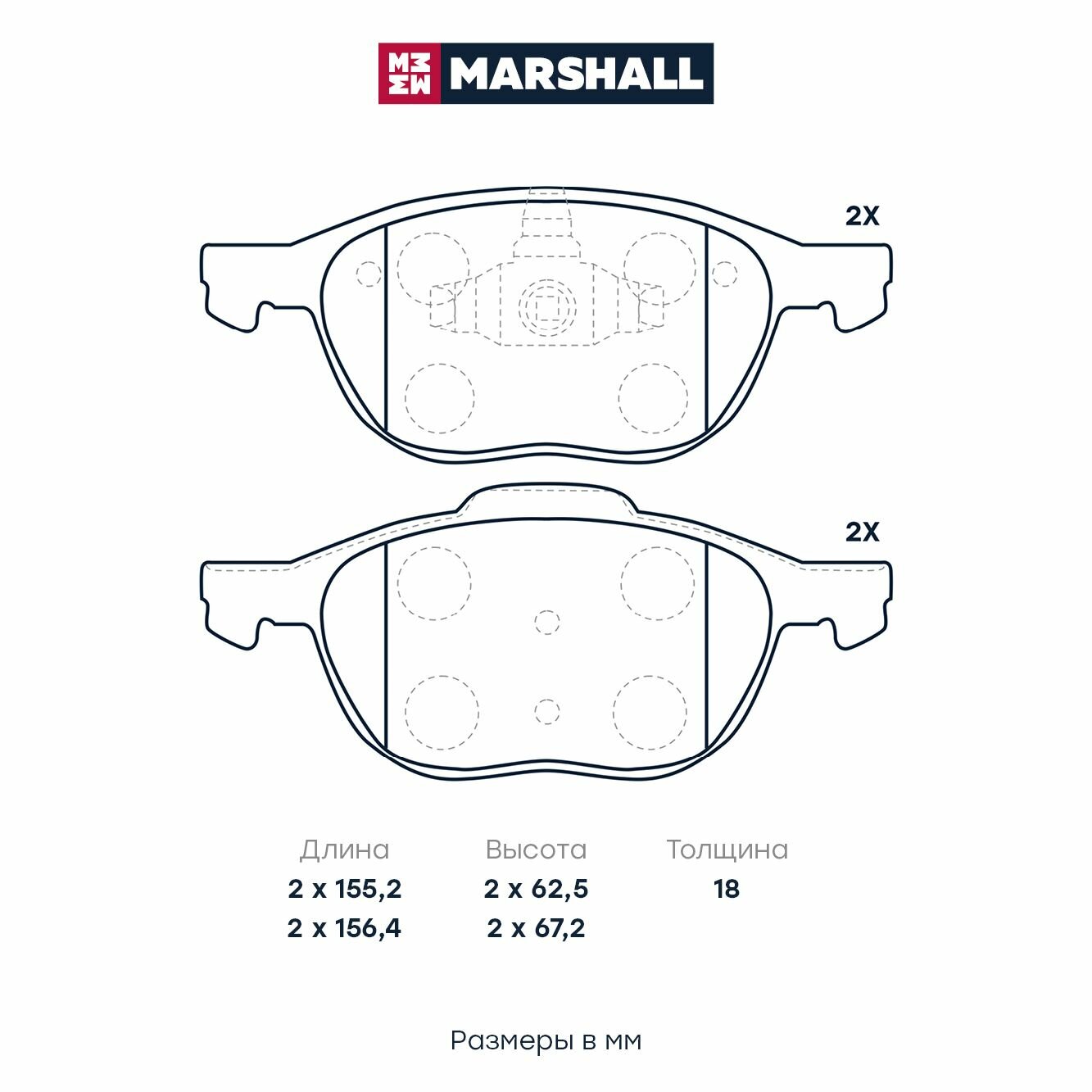 Тормозные колодки дисковые передние MARSHALL M2623723 для Ford Focus II, III 04-, Mazda 3 (BK, BL) 03-, Volvo S40 (544) 04- (GDB1583 // 8V412K021AA, 1753844, 3M5J2K021A1A)