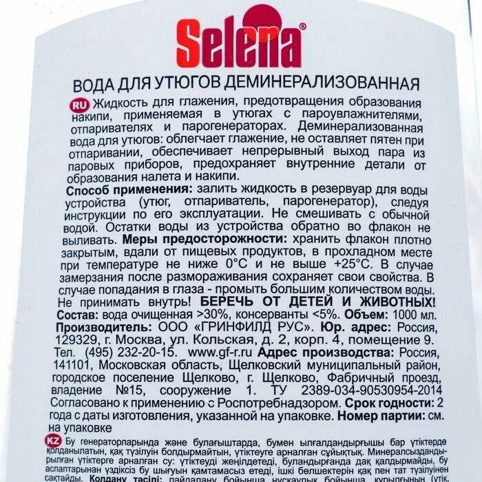 Selena вода для утюгов деминерализованная без запаха 1 л. интересное: