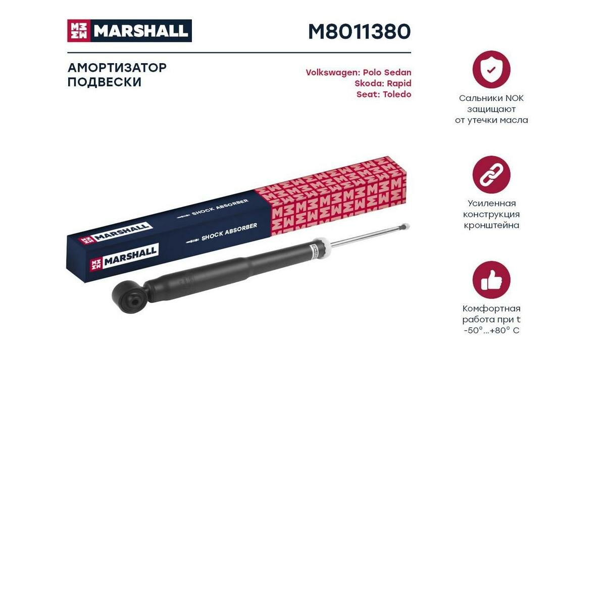 Амортизатор задний правый/левый газовый Marshall M8011380 для Seat Toledo IV, Skoda Rapid, VW Polo Sedan интересное: