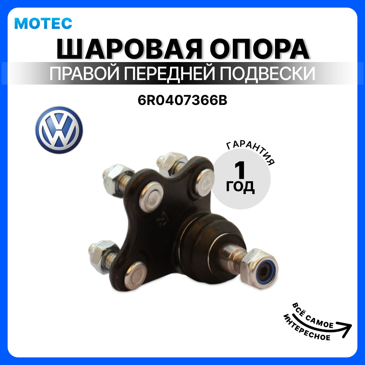 Мотек Шаровая опора правой передней подвески арт. 6R0407366B