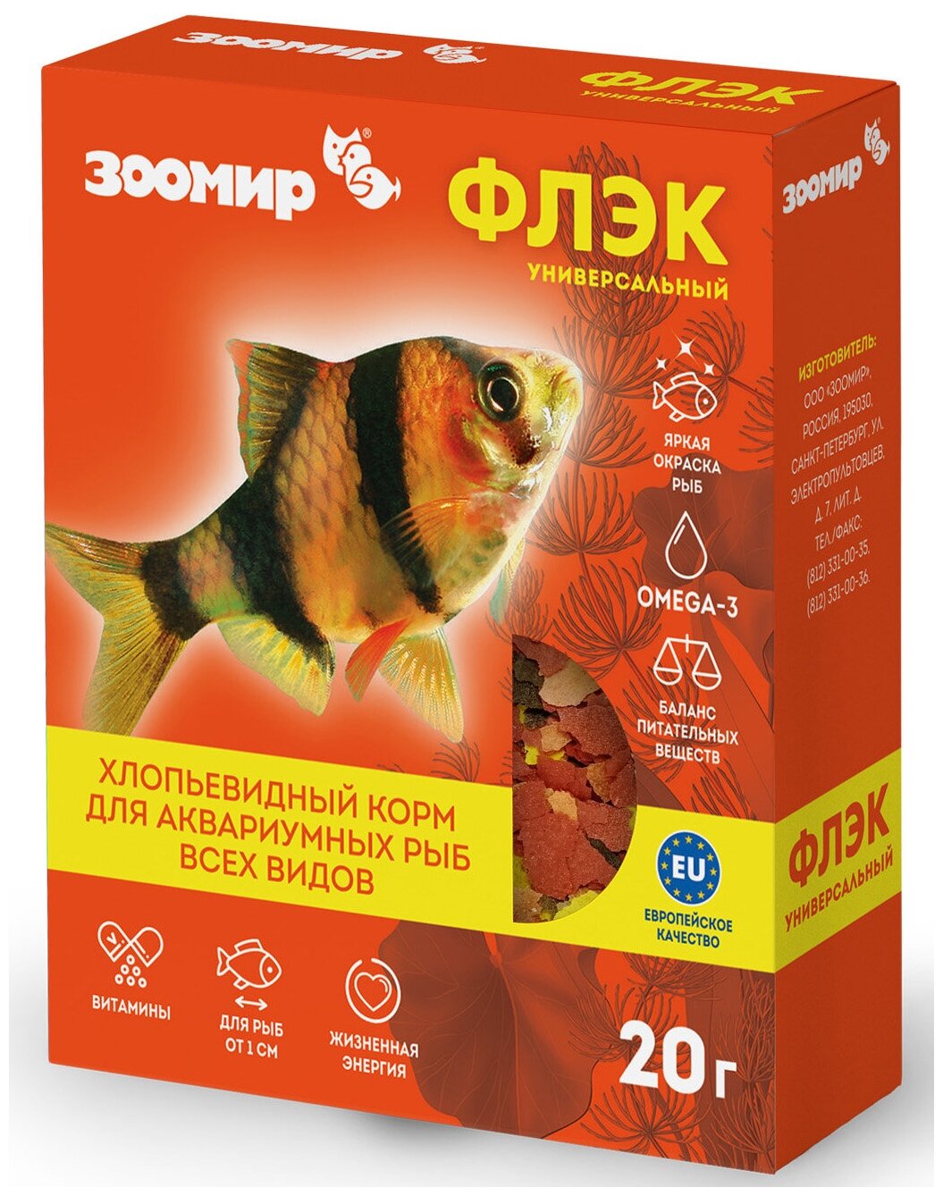 Зоомир флэк универсальный для всех аквариумных рыб хлопья 20 гр