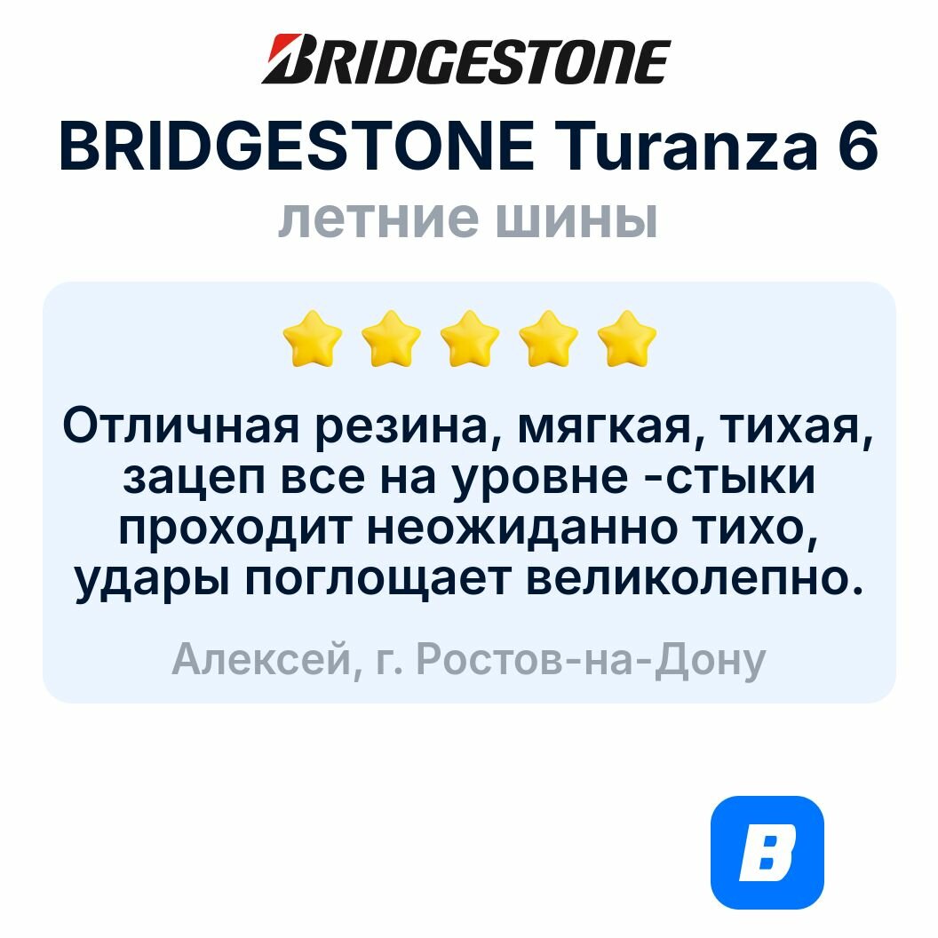 Ниже Вы можете прочитать отзывы на Шина Bridgestone(Бриджстоун) Turanza 6 265/45 R21 104W летняя, ознакомится с подробными характеристиками, посмотреть интересные обзоры и фотографии на Шина Bridgestone(Бриджстоун) Turanza 6 265/45 R21 104W летняя.